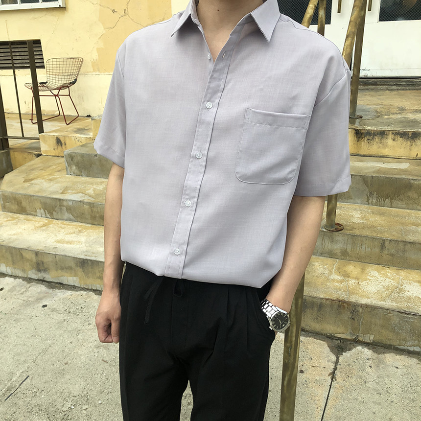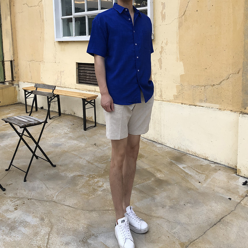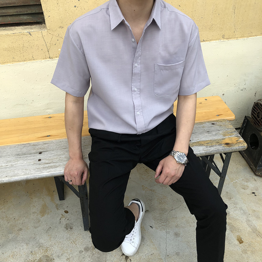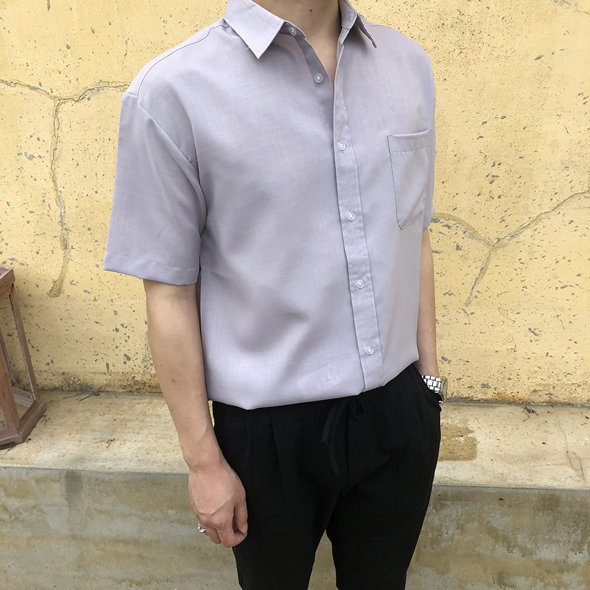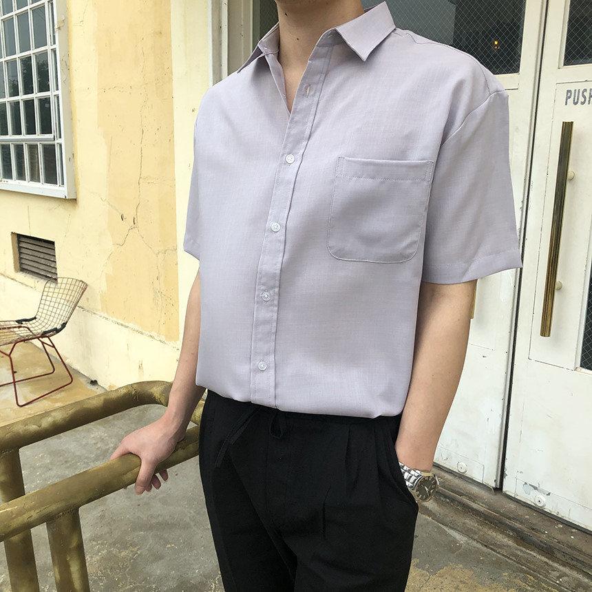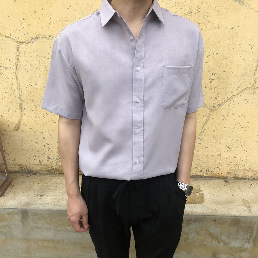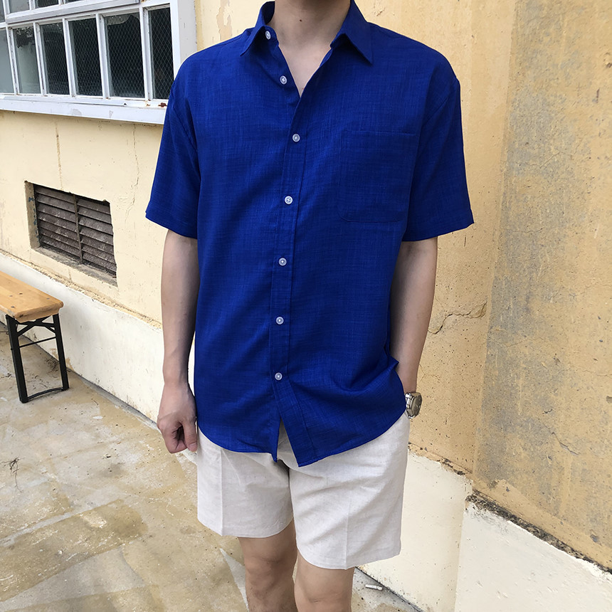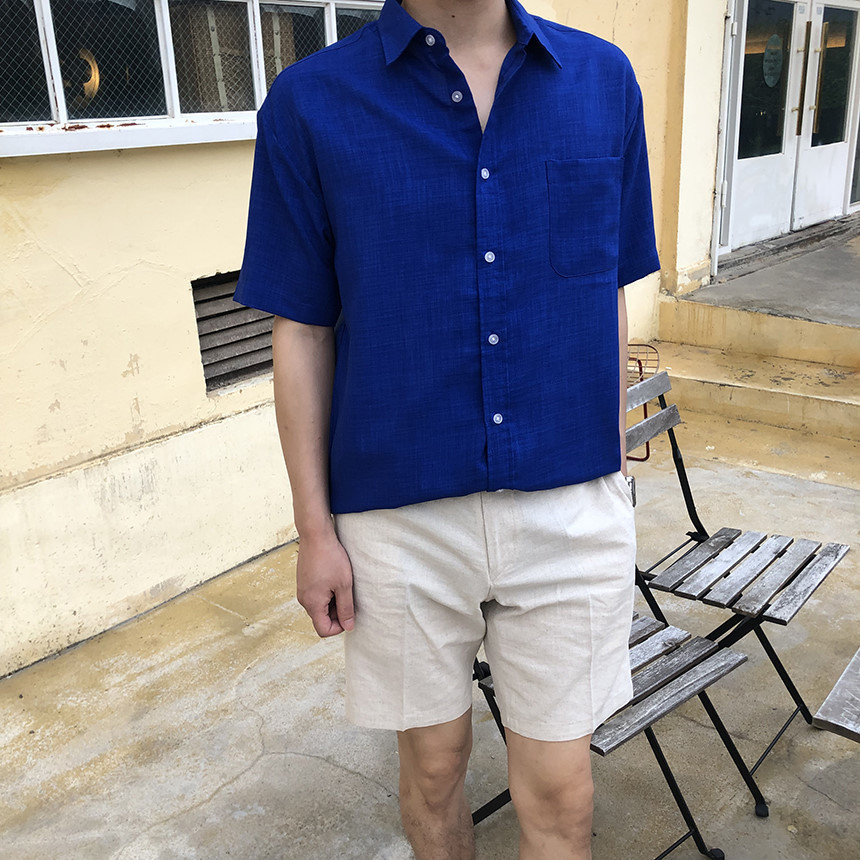 무지 스타일의 깔끔한 하늘하늘한 소재인 반팔남방 입니다.
