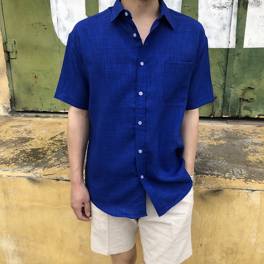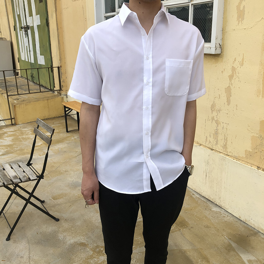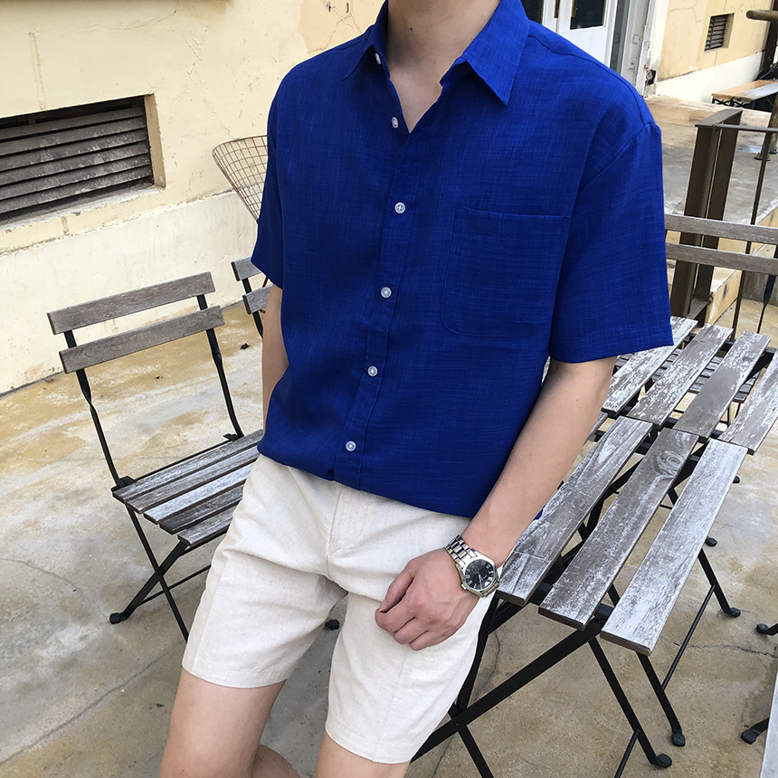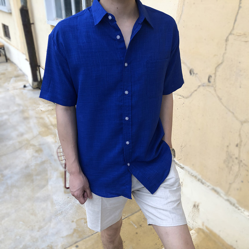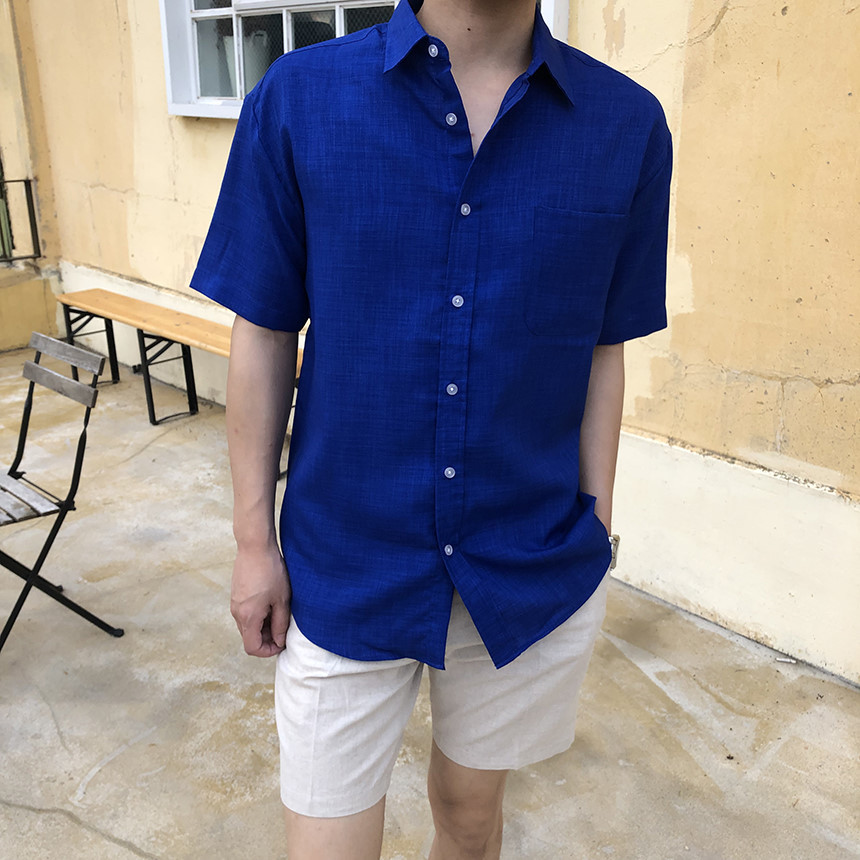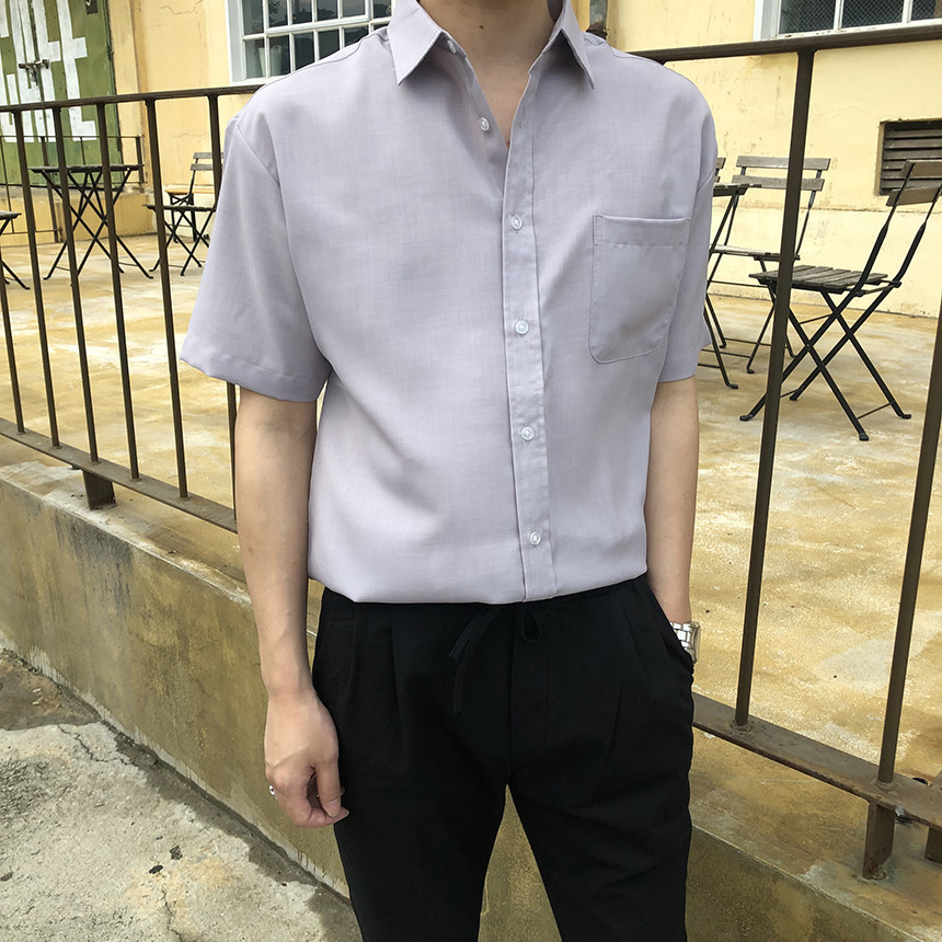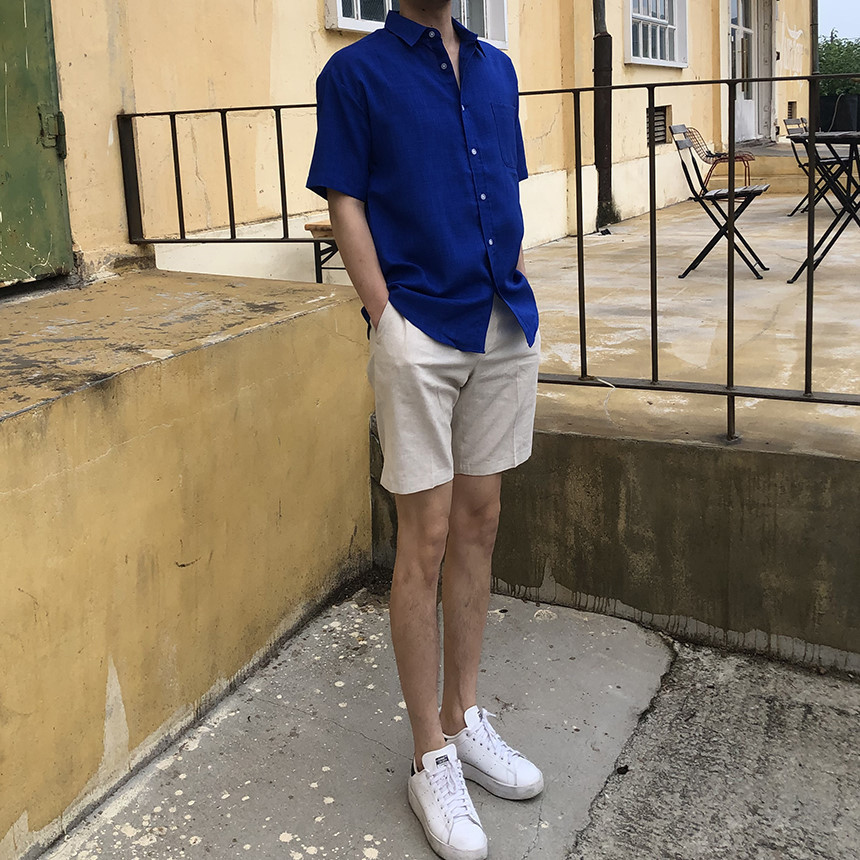 무지 스타일의 깔끔한 하늘하늘한 소재인 반팔남방 입니다.