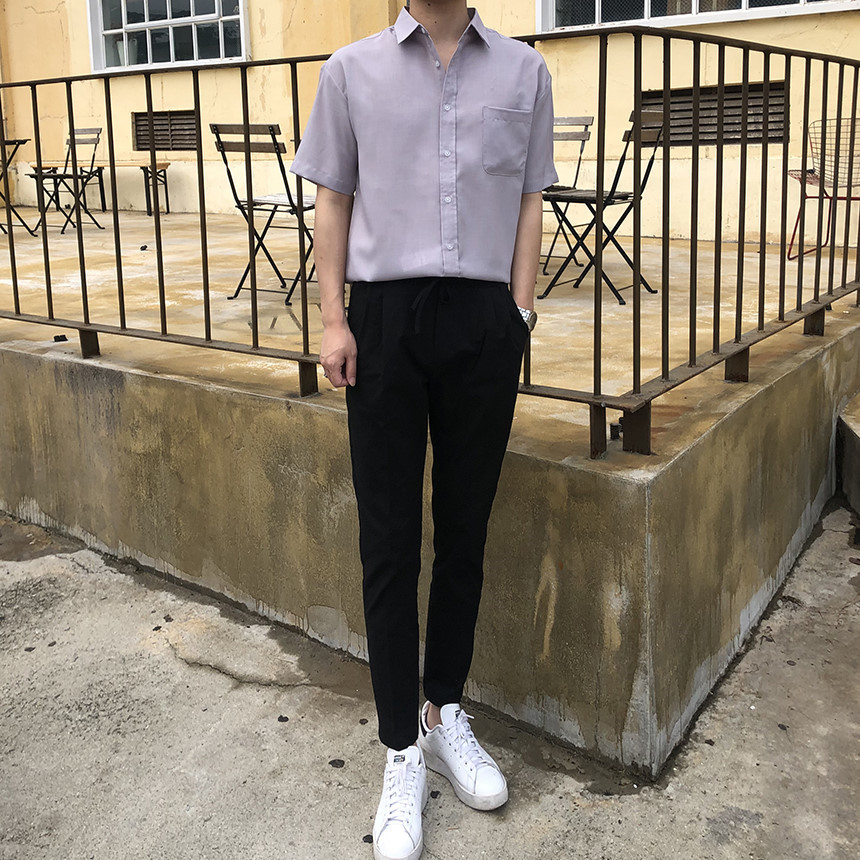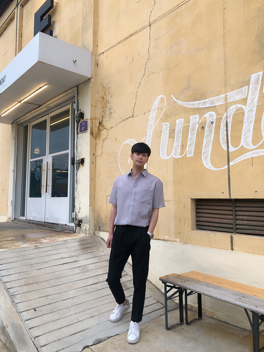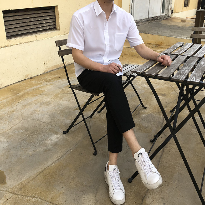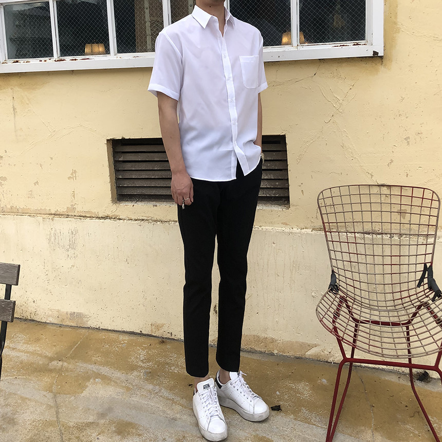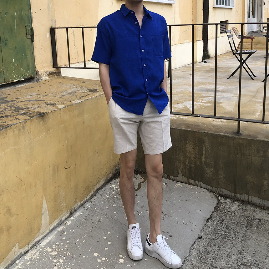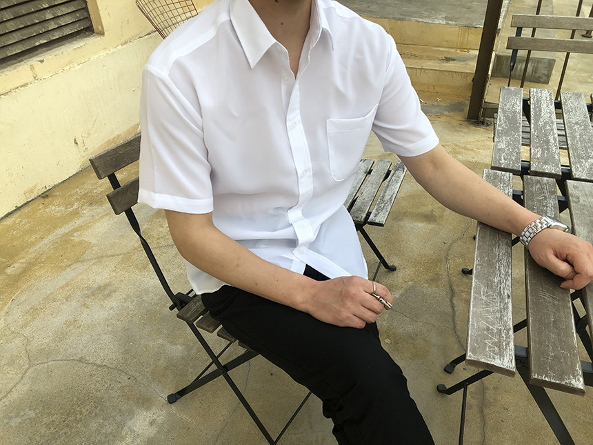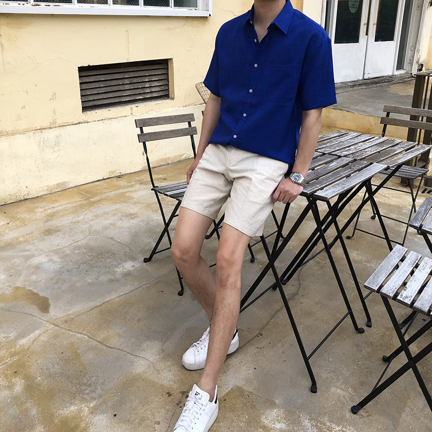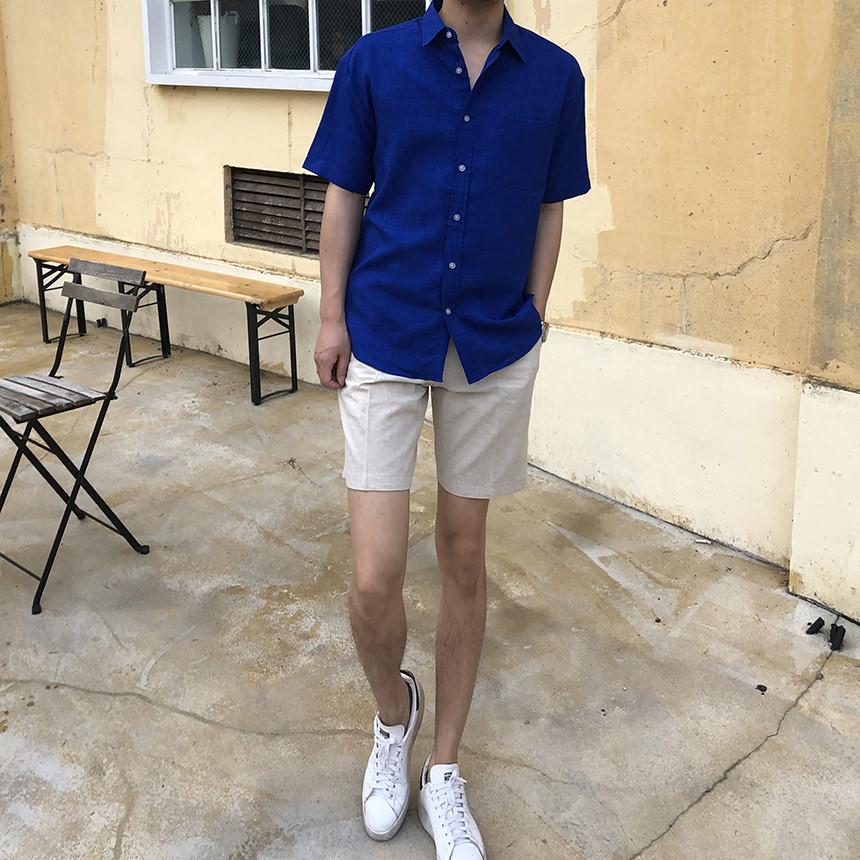 무지 스타일의 깔끔한 하늘하늘한 소재인 반팔남방 입니다.