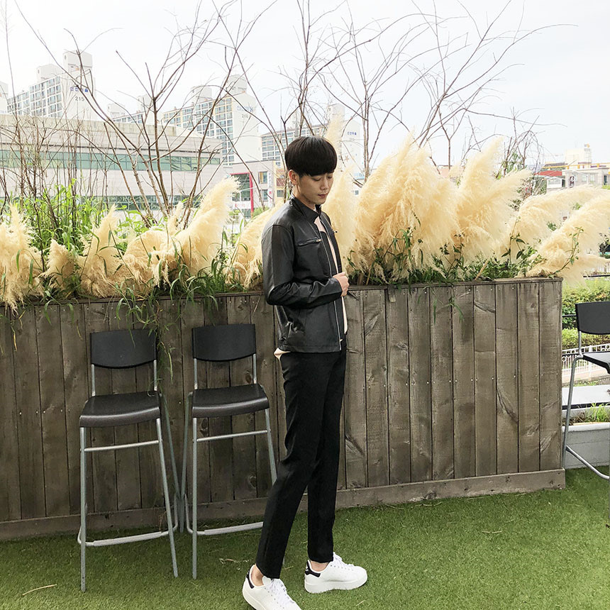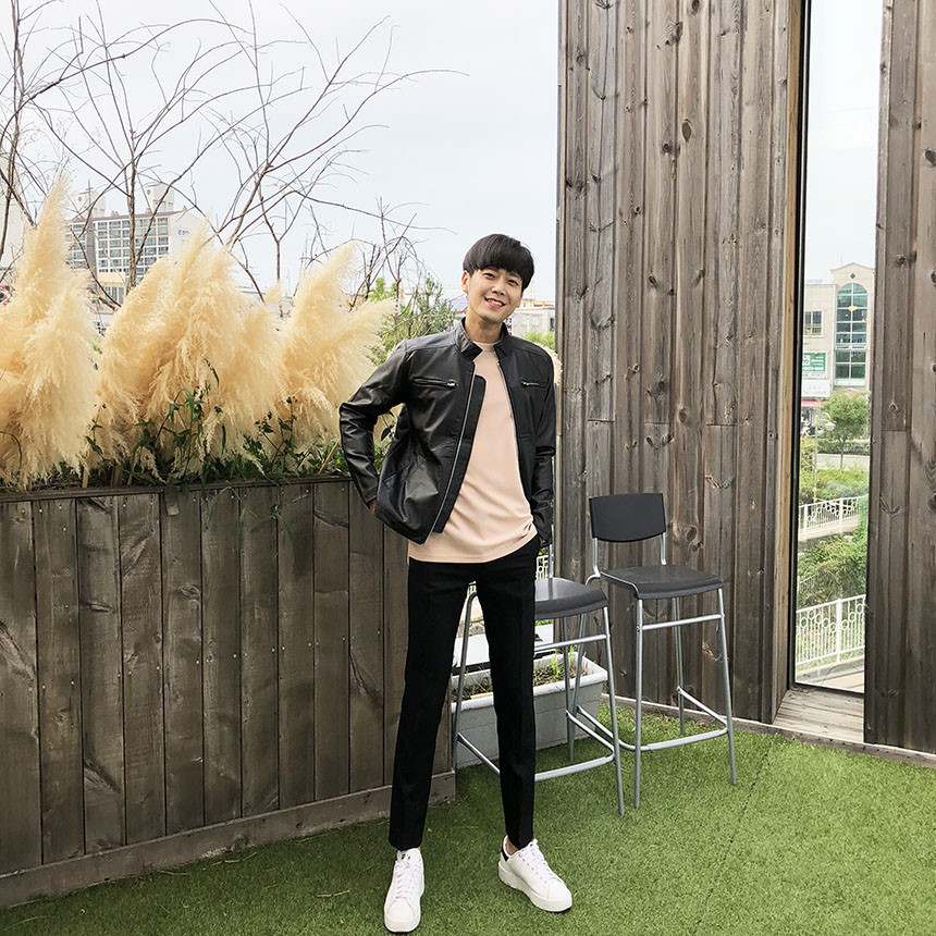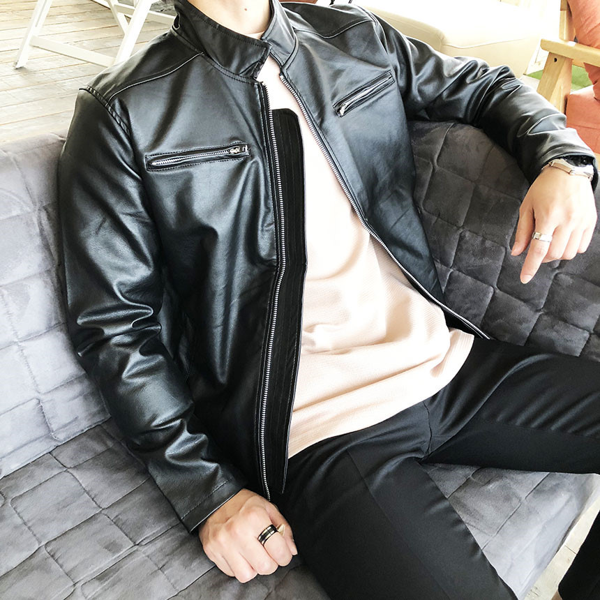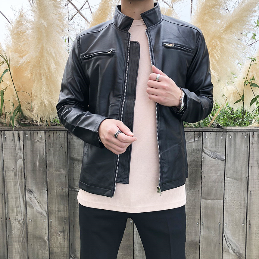 리얼 가죽 느낌을 그대로 살린 합성피혁의 라이더자켓으로