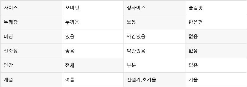 평소 입던 스타일과 달라 만족도가 낮을 수 있습니다