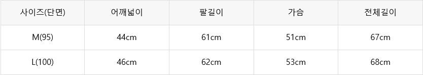 - 사이즈는 재는 방법에따라 약간씩 다를 수 있으며, 기성복으로 대량생산하기 때문에 사이즈는 약간씩 오차가 있을 수 있습니다