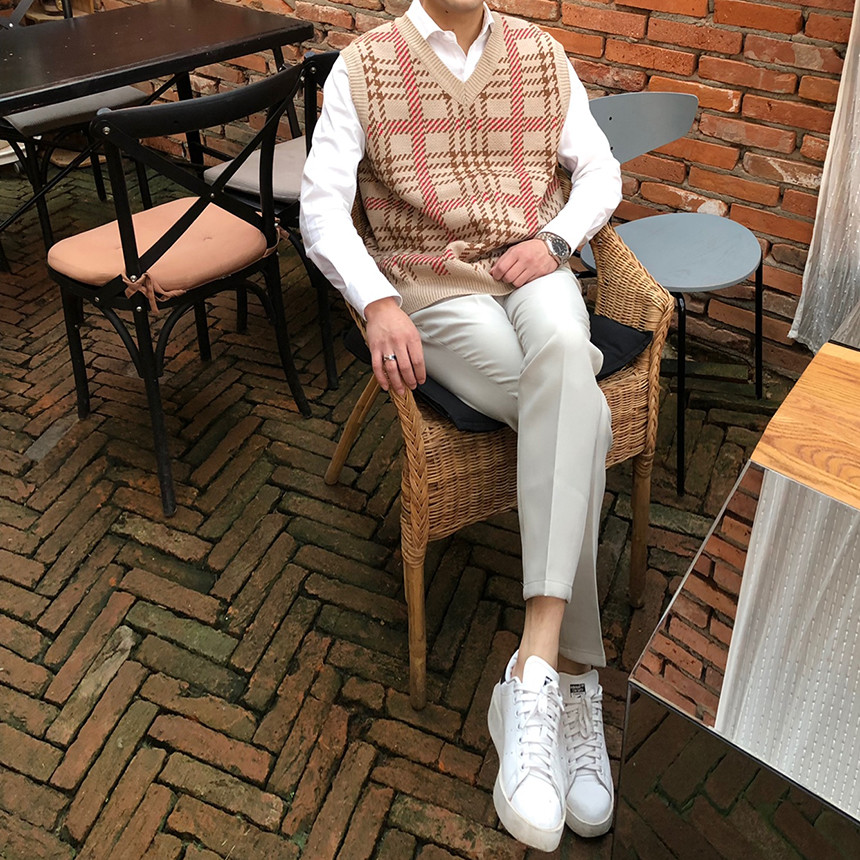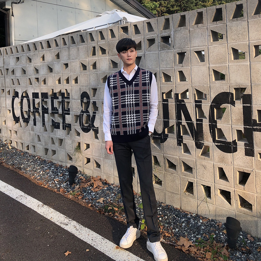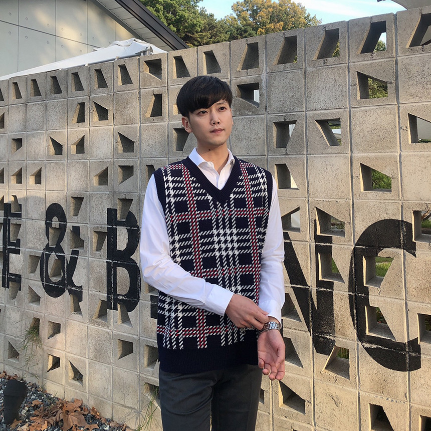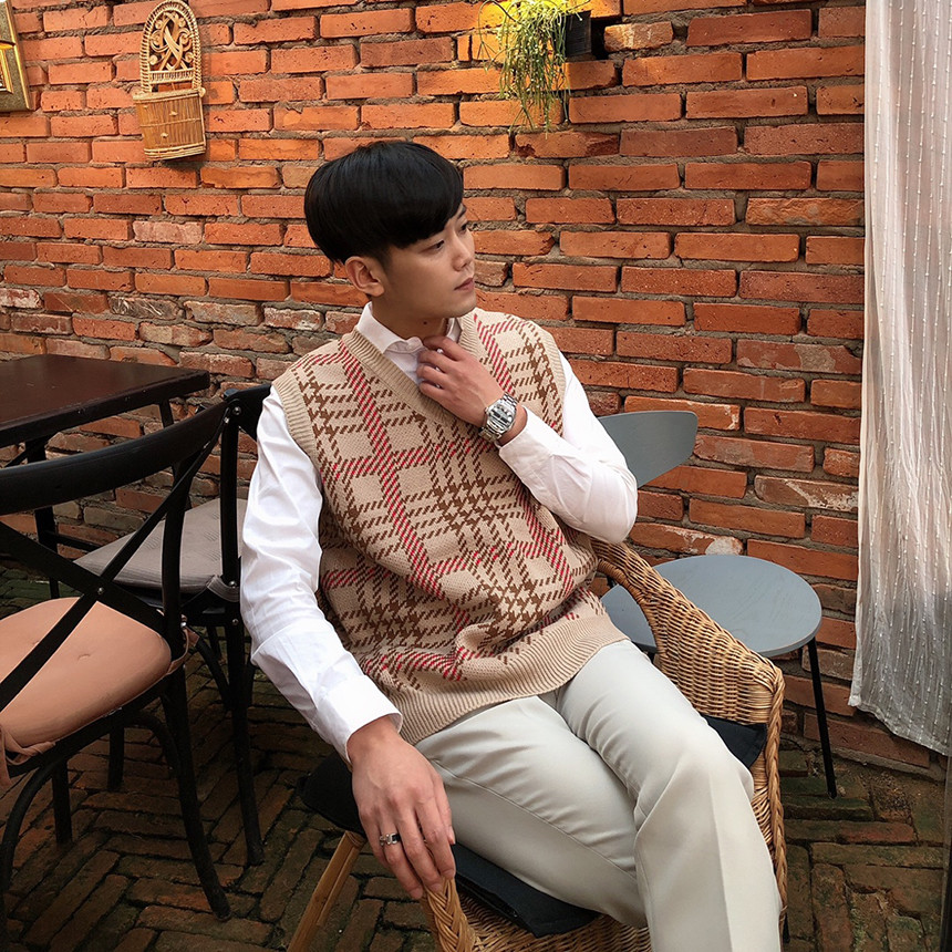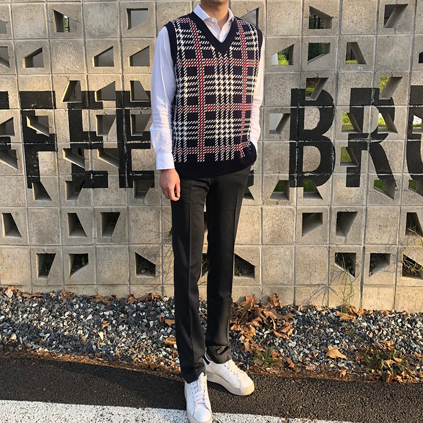 브이넥 캐주얼한 명품 스타일의 조끼 입니다.