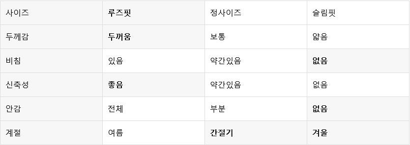 평소 입던 스타일과 달라 만족도가 낮을 수 있습니다