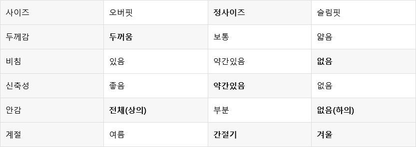 평소 입던 스타일과 달라 만족도가 낮을 수 있습니다