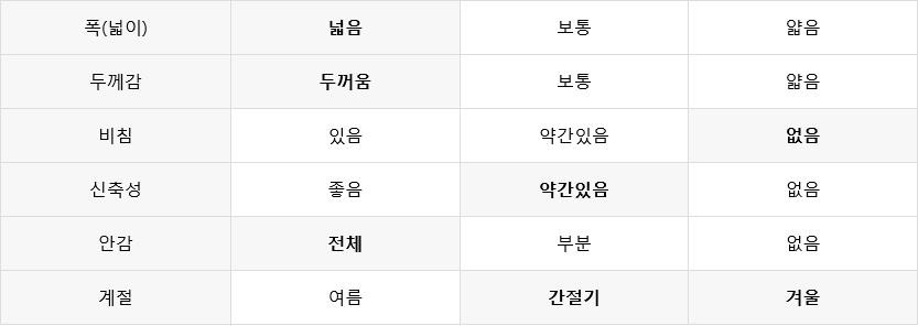 - 저희상품은 질좋은 원단으로 생산되고 있어 상품의 만족도가 높습니다
