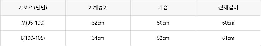 - 사이즈는 재는 방법에따라 약간씩 다를 수 있으며, 기성복으로 대량생산하기 때문에 사이즈는 약간씩 오차가 있을 수 있습니다