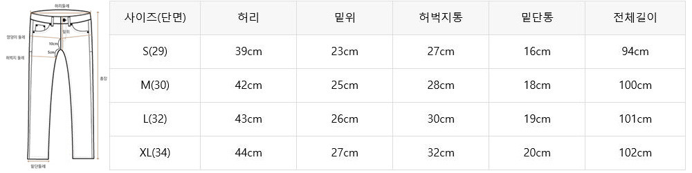 또는 다리가 두꺼운편이면 바지도 한치수 크게 구매 권장