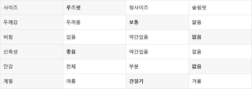 평소 입던 스타일과 달라 만족도가 낮을 수 있습니다