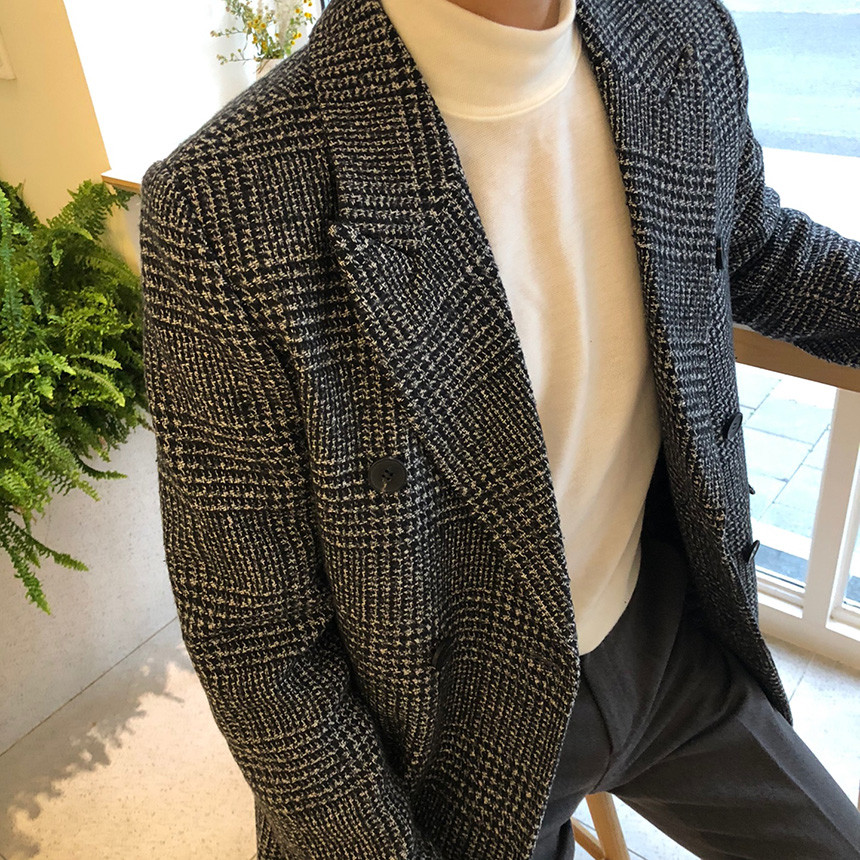 더블 디자인의 무릎 밑까지 오는 롱한 기장입니다.
