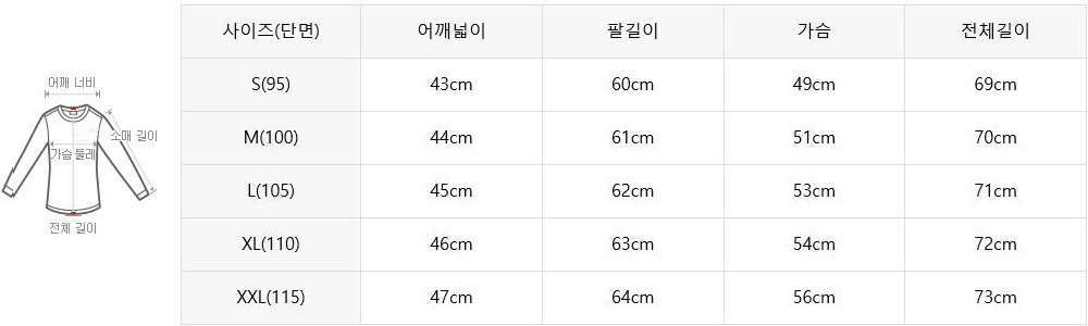 - 사이즈는 재는 방법에따라 약간씩 다를 수 있으며, 기성복으로 대량생산하기 때문에 사이즈는 약간씩 오차가 있을 수 있습니다