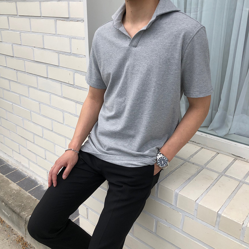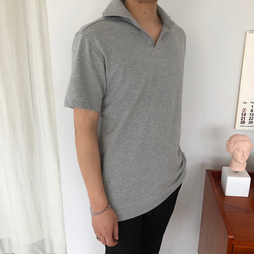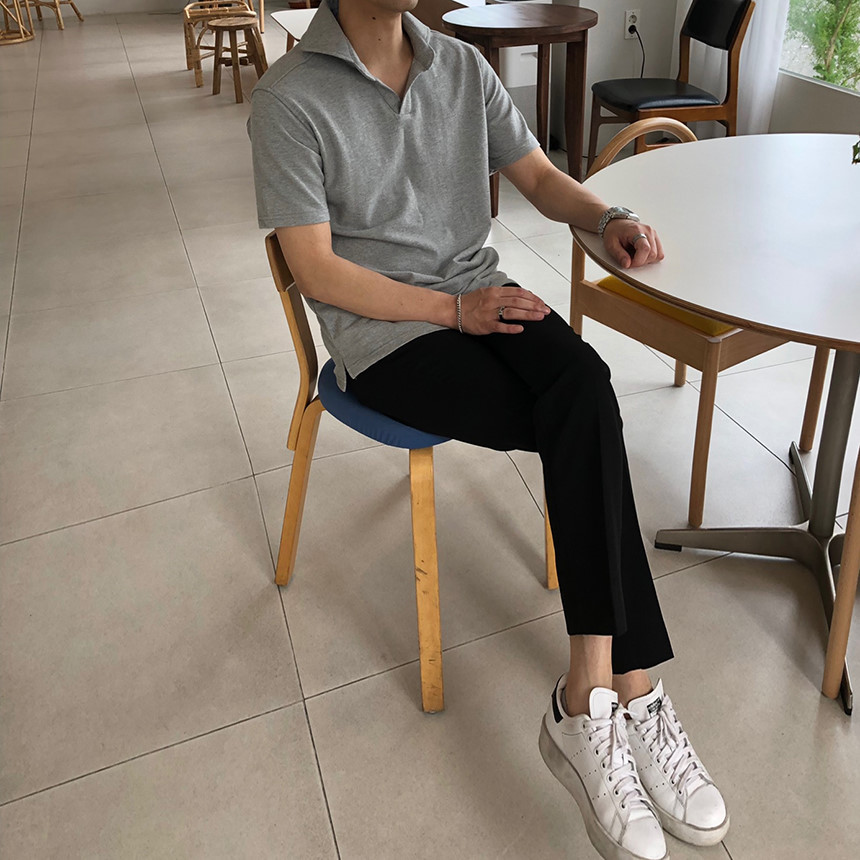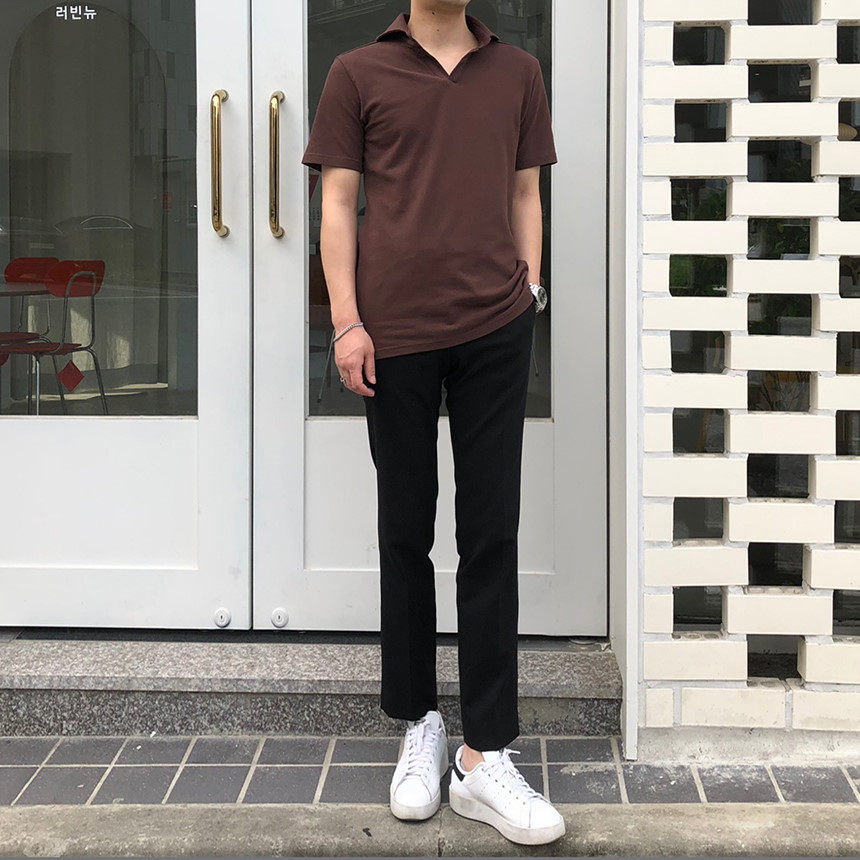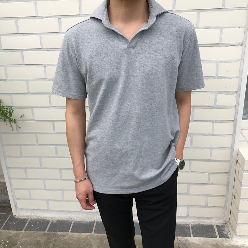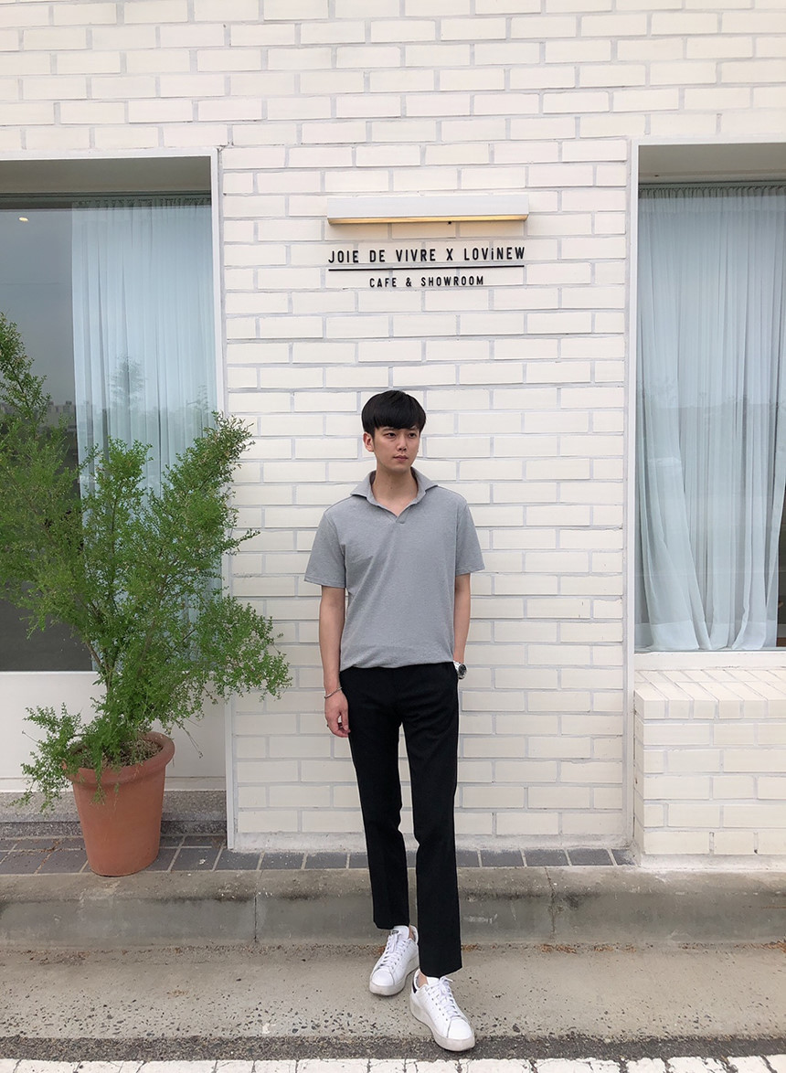 와이드 카라 티셔츠로 블랙, 화이트, 그레이, 브라운
