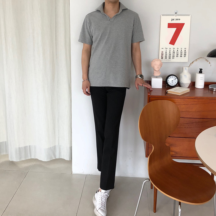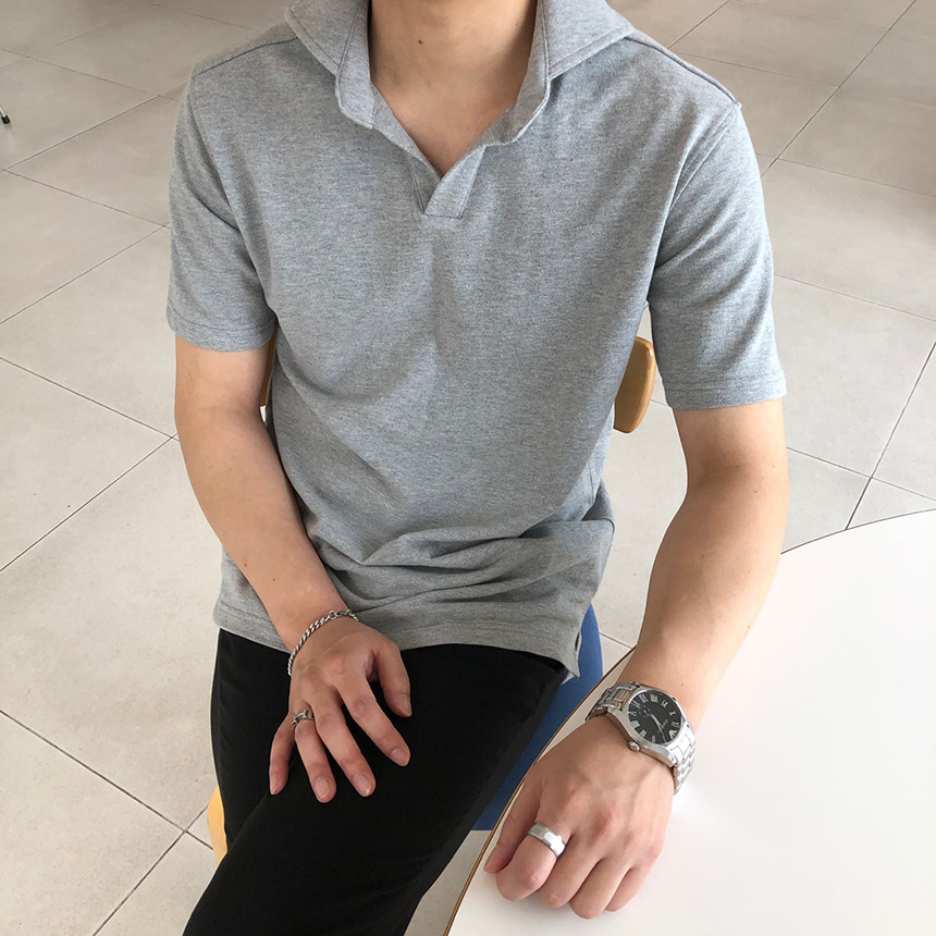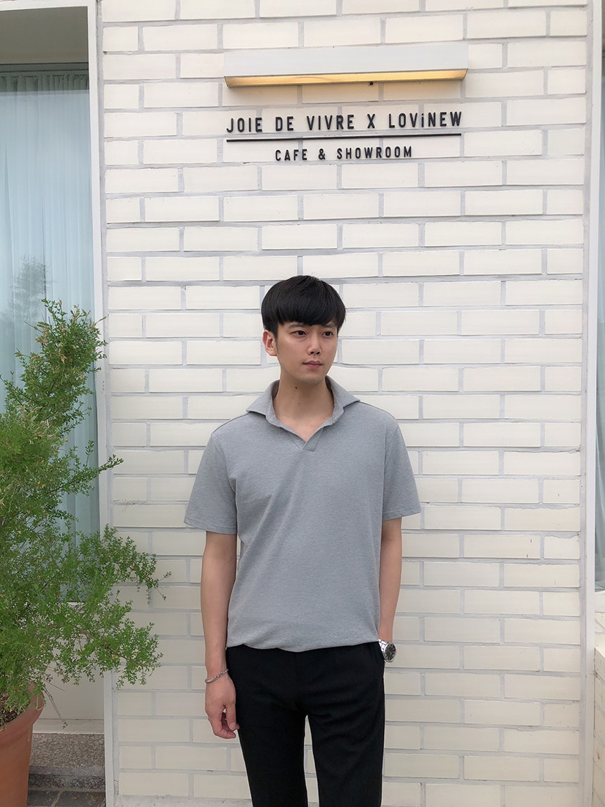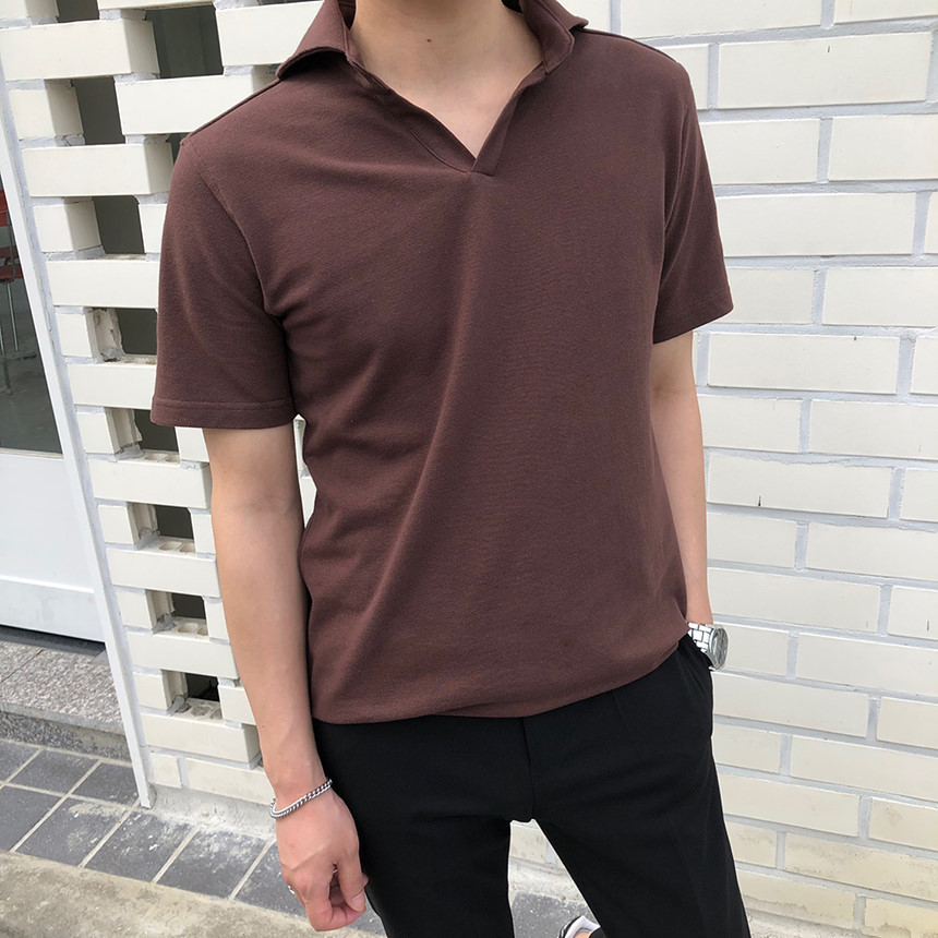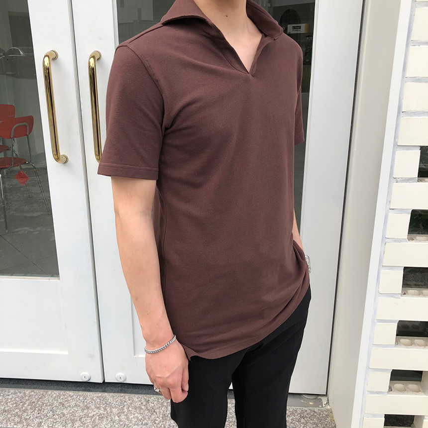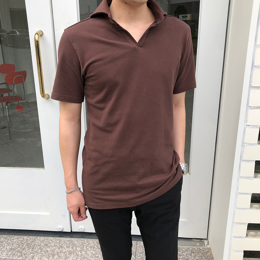 와이드 카라 티셔츠로 블랙, 화이트, 그레이, 브라운