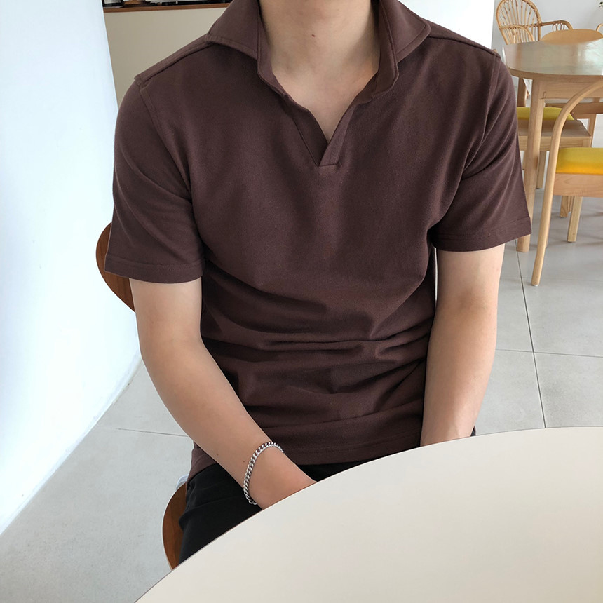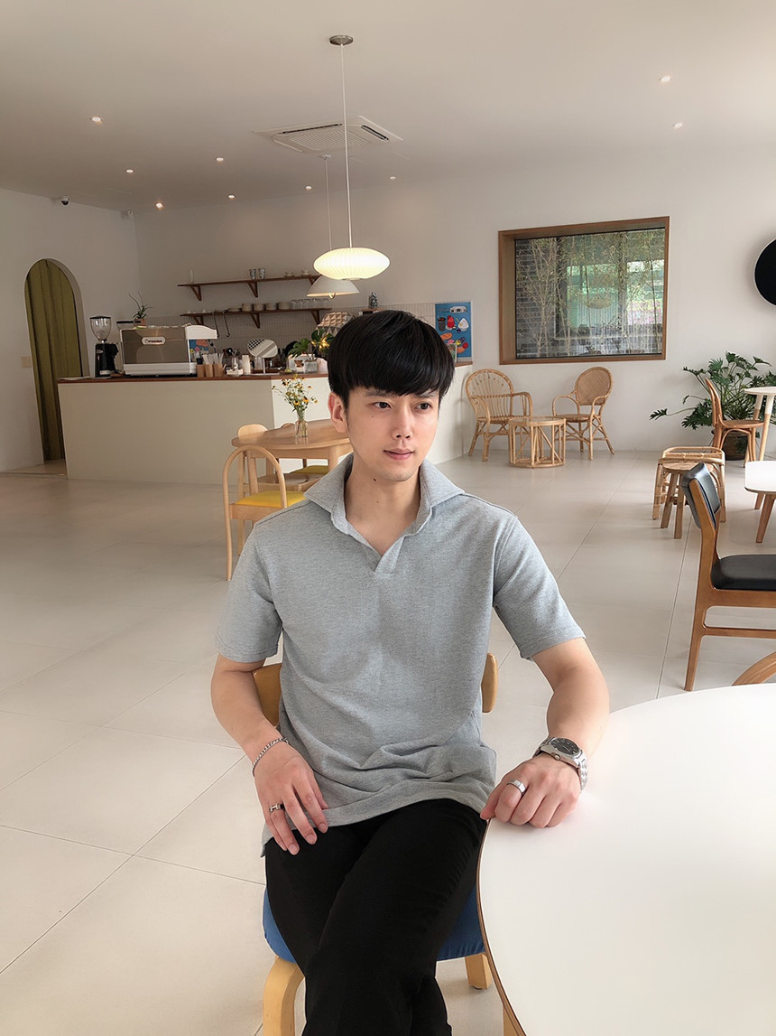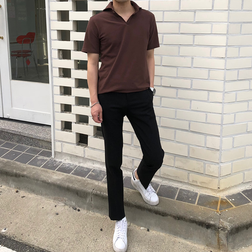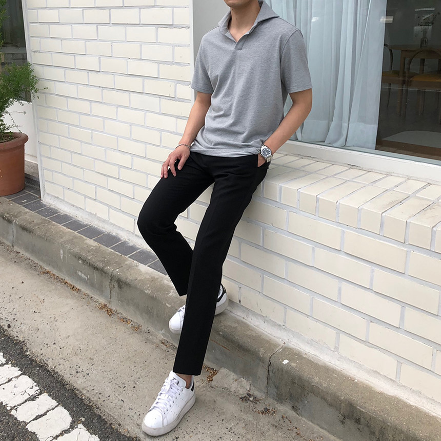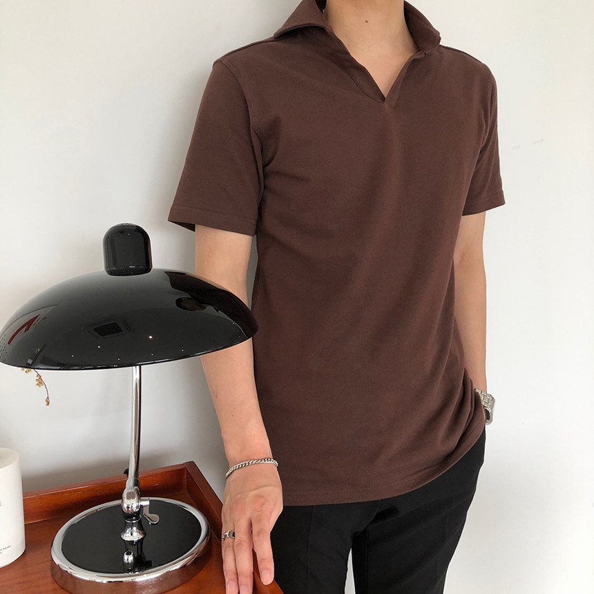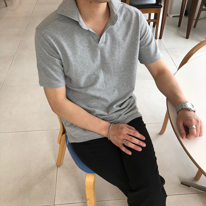 와이드 카라 티셔츠로 블랙, 화이트, 그레이, 브라운
