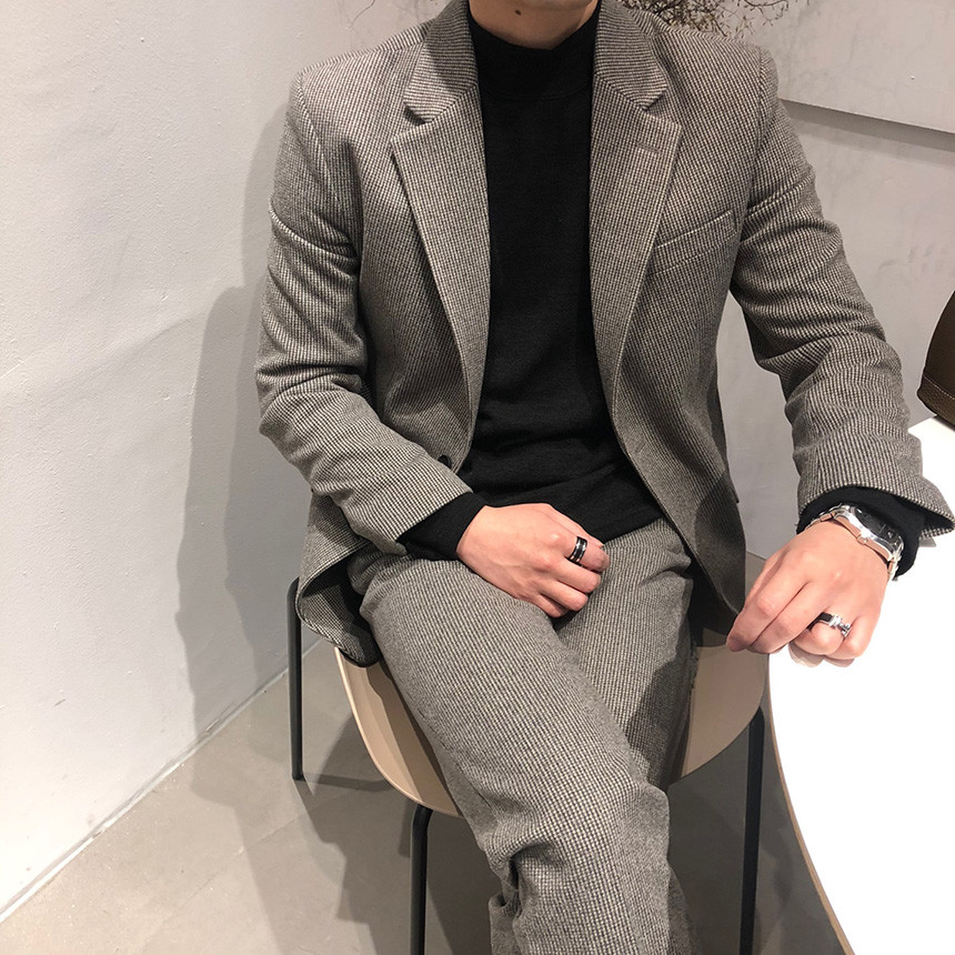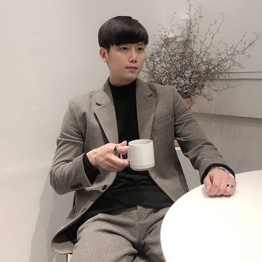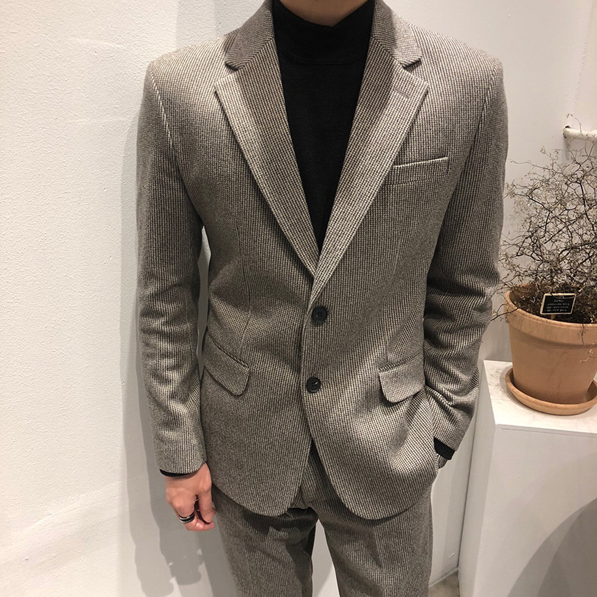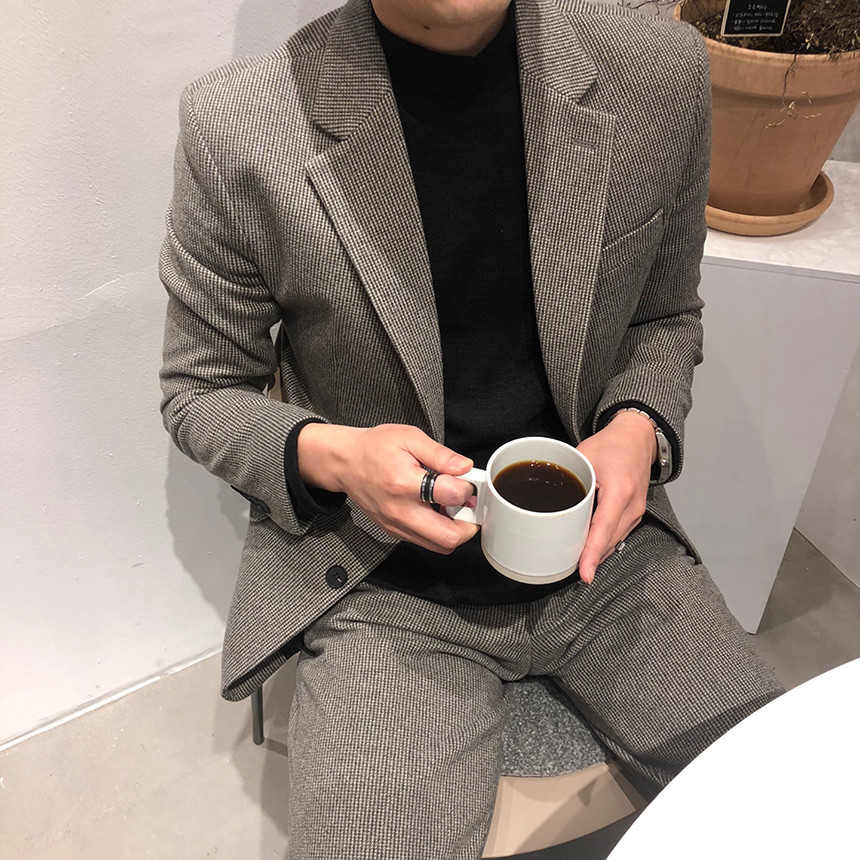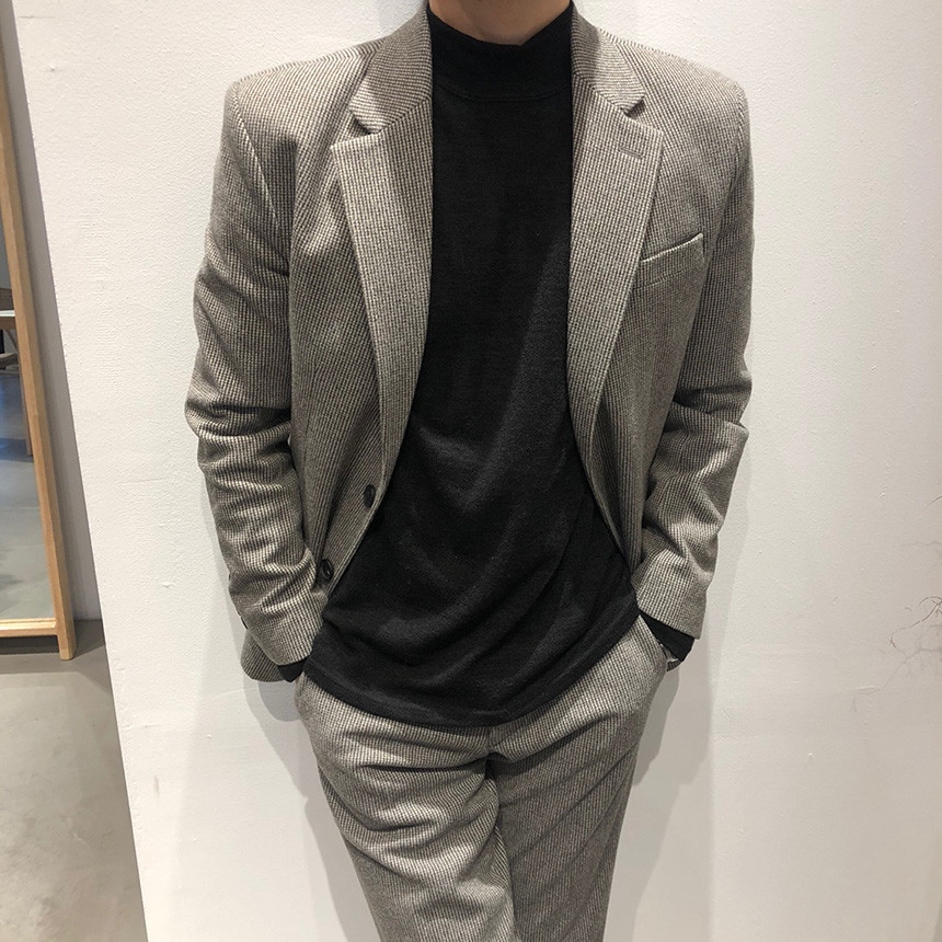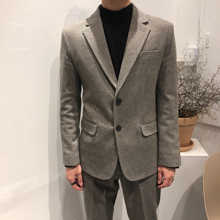 하운드체크 다크그레이 울 자켓
