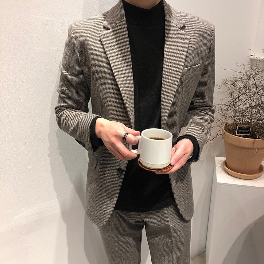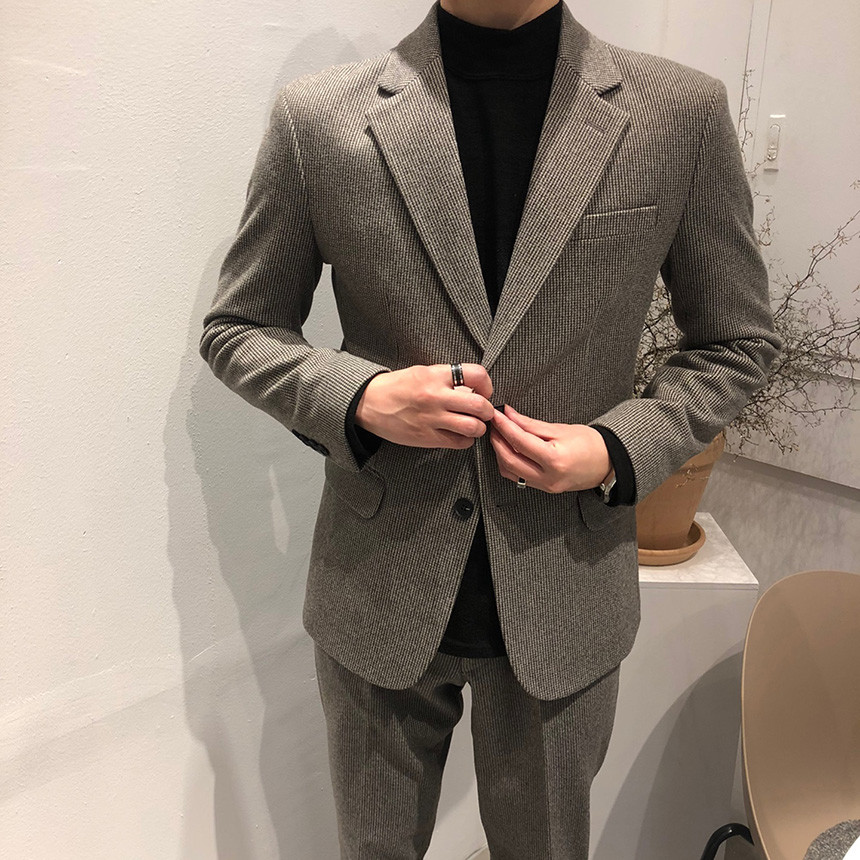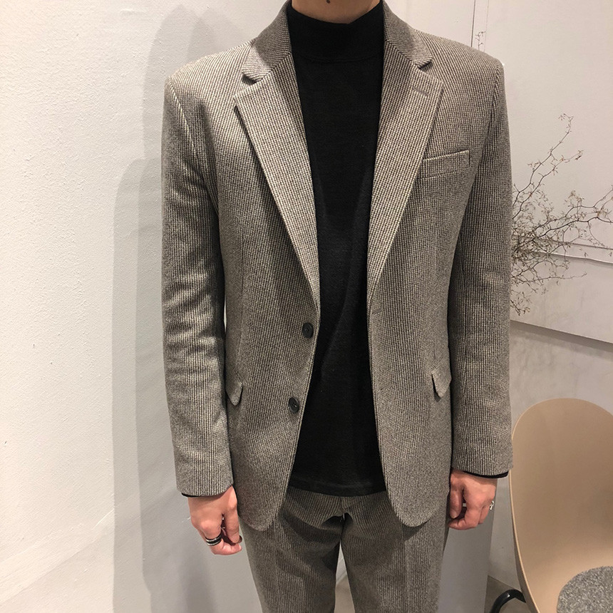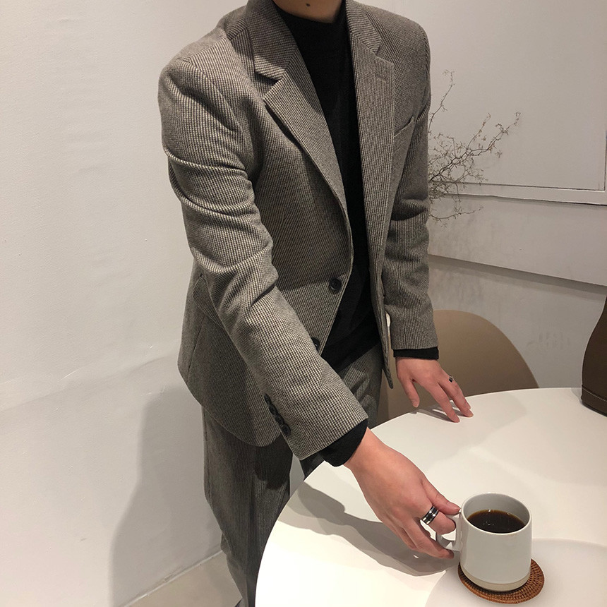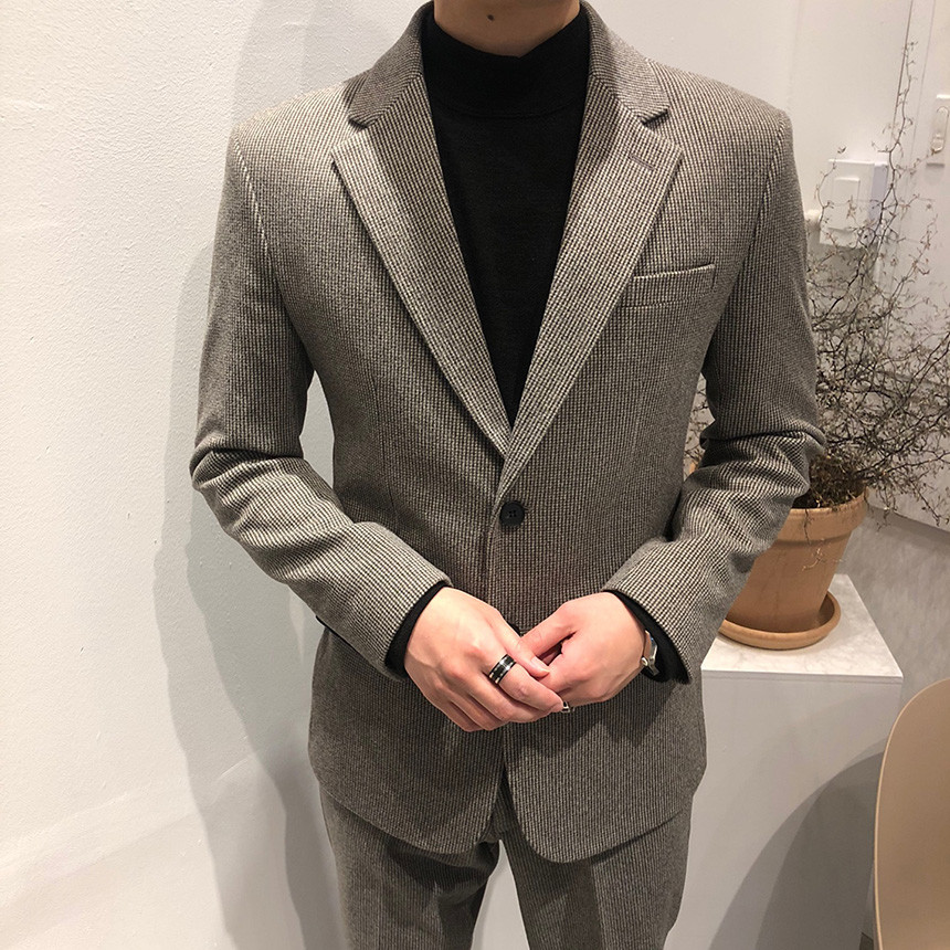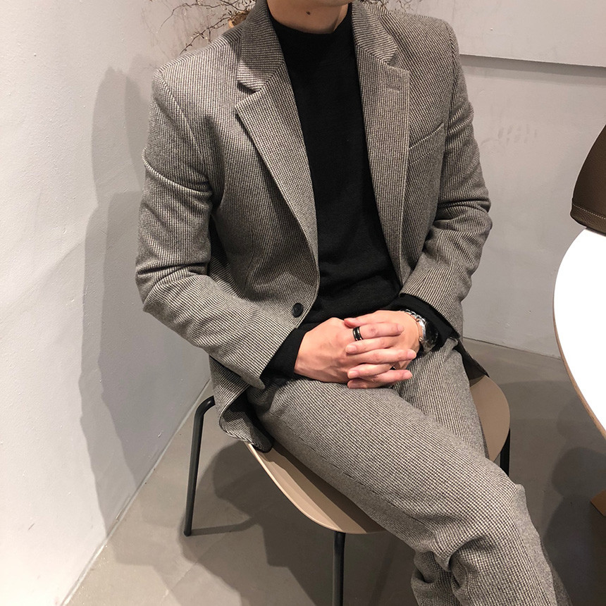 하운드체크 다크그레이 울 자켓