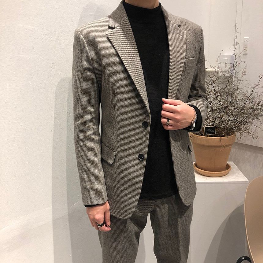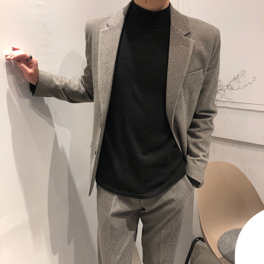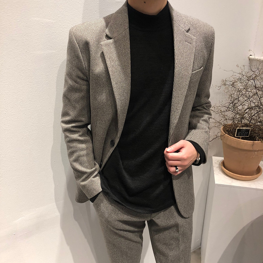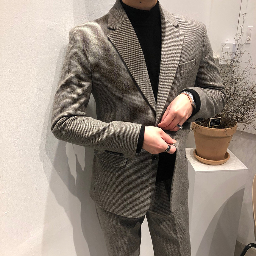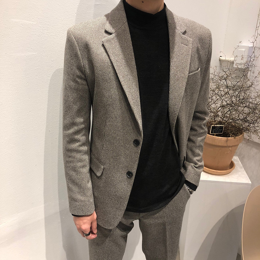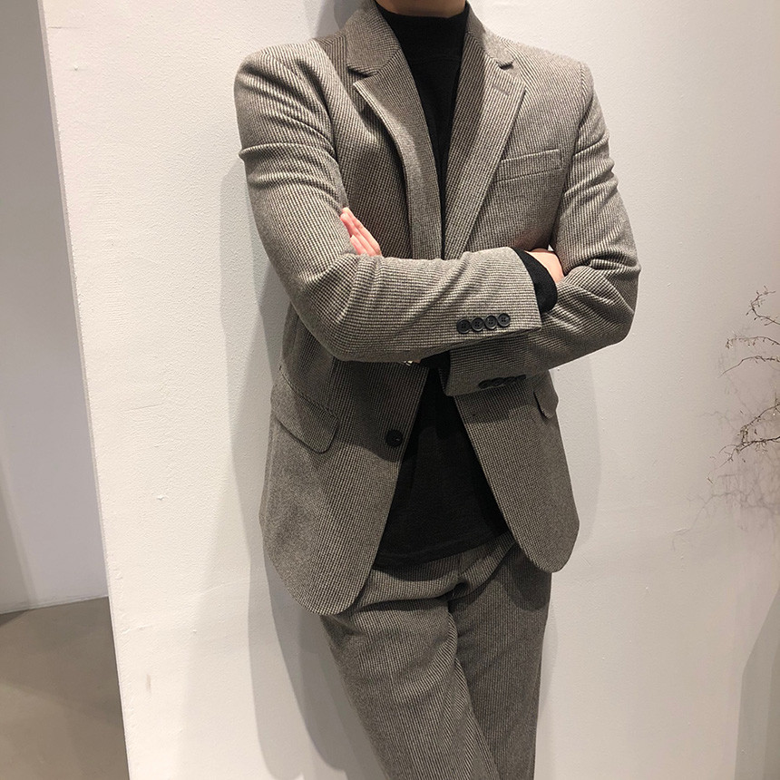하운드체크 다크그레이 울 자켓
