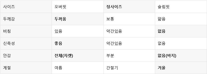 (수트는 대부분 슬림핏)