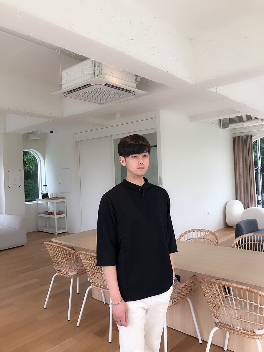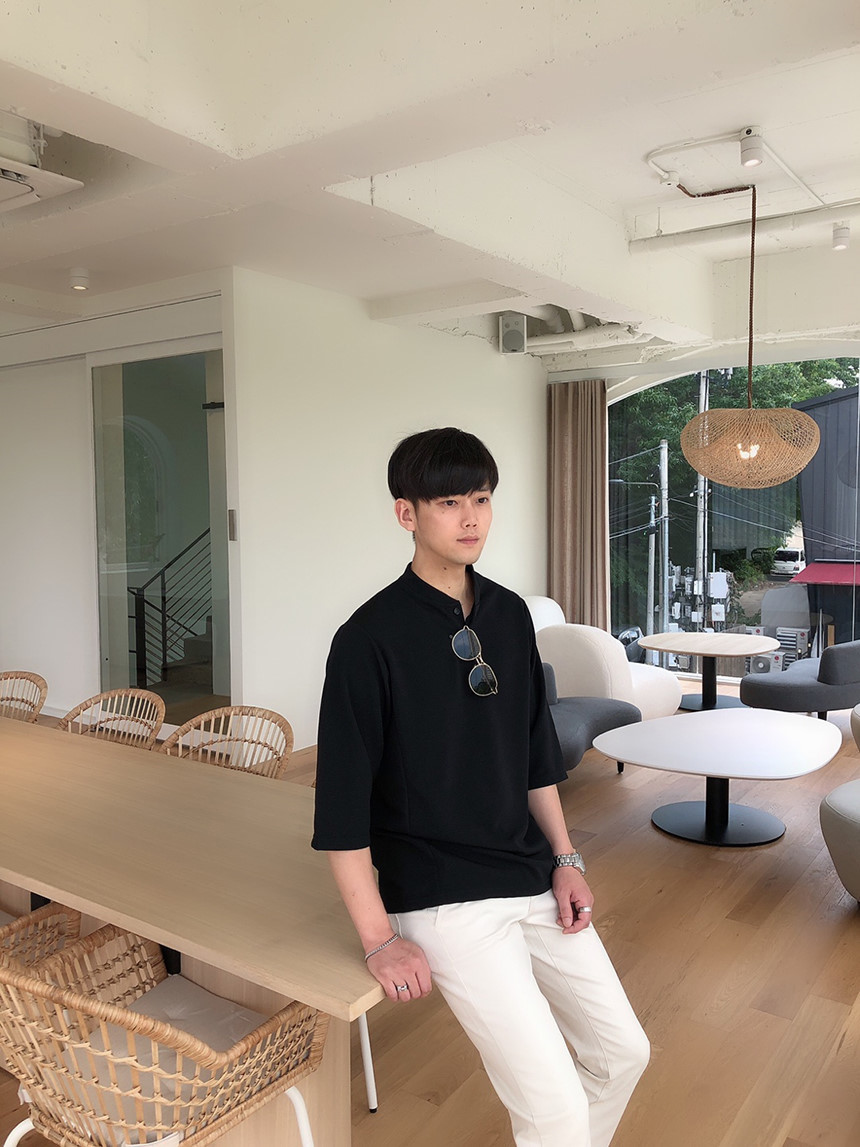무지 헨리넥 칠부 티셔츠로