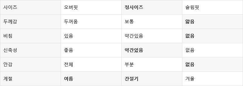 평소 입던 스타일과 달라 만족도가 낮을 수 있습니다