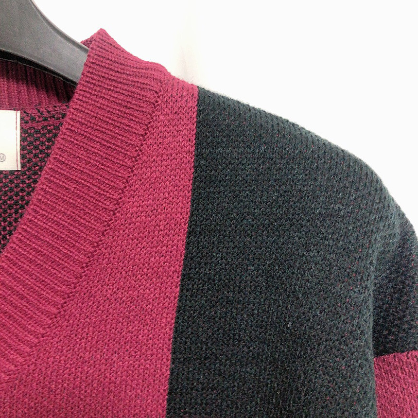 유니크한 디자인의 브이넥 니트 입니다.