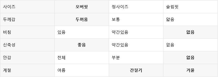 평소 입던 스타일과 달라 만족도가 낮을 수 있습니다