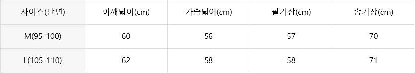 - 사이즈는 재는 방법에따라 약간씩 다를 수 있으며, 기성복으로 대량생산하기 때문에 사이즈는 약간씩 오차가 있을 수 있습니다