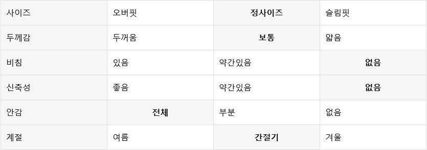 평소 입던 스타일과 달라 만족도가 낮을 수 있습니다