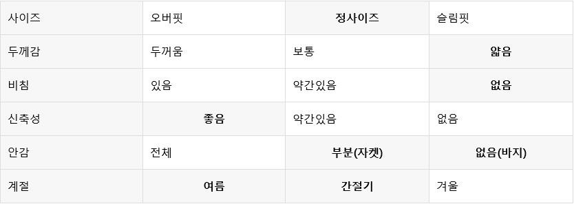 입으셨을때 떨어지는 옷맵시가 큰 장점이라고 생각합니다!