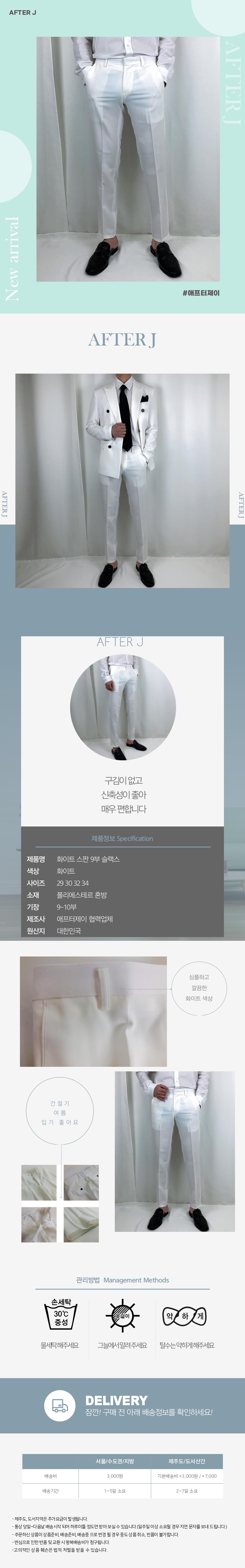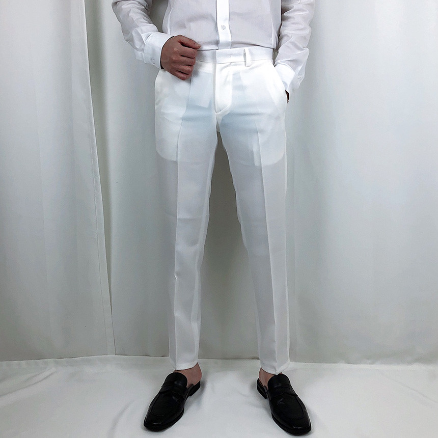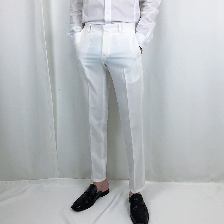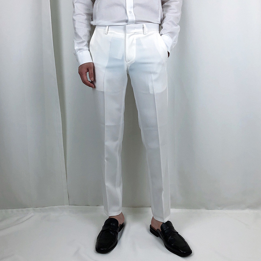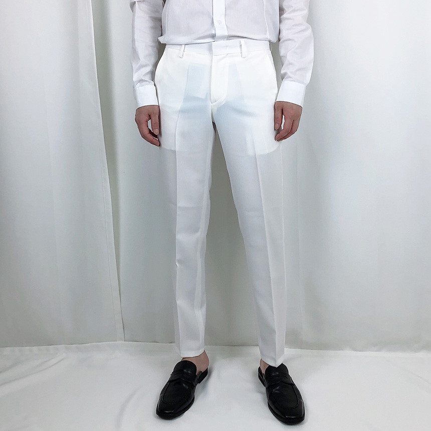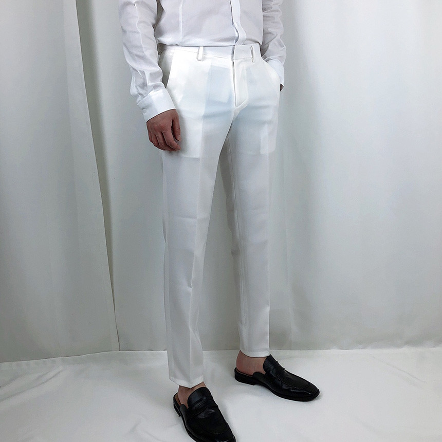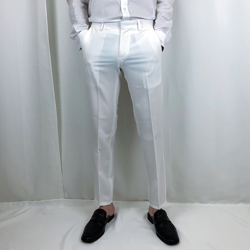 화이트 스판 9부 슬랙스