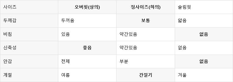 평소 입던 스타일과 달라 만족도가 낮을 수 있습니다