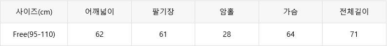 - 사이즈는 재는 방법에따라 약간씩 다를 수 있으며, 기성복으로 대량생산하기 때문에 사이즈는 약간씩 오차가 있을 수 있습니다