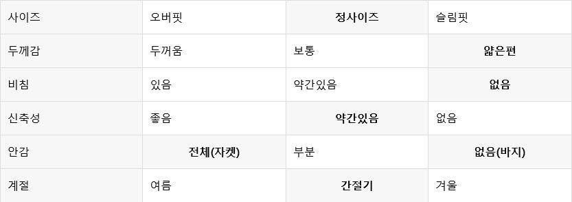 (수트는 대부분 슬림핏)