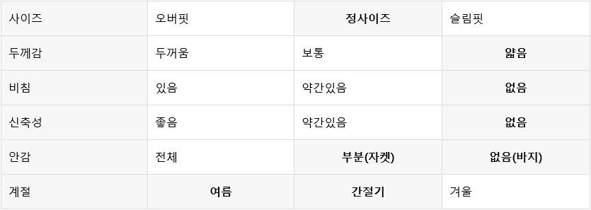- 오버핏을 제외한 정장 및 코트류는 대부분 슬림핏으로 덩치가 좋은분들은 맞지 않을 수 있습니다