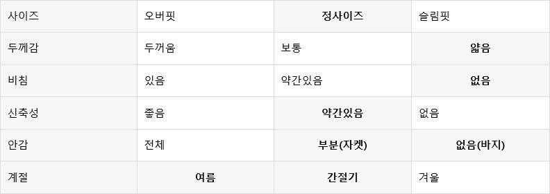 입으셨을때 떨어지는 옷맵시가 큰 장점이라고 생각합니다!