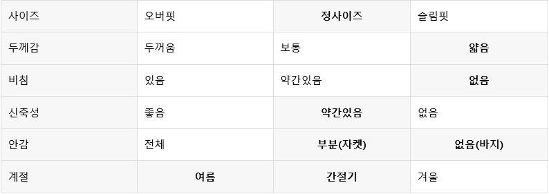 (수트는 대부분 슬림핏)