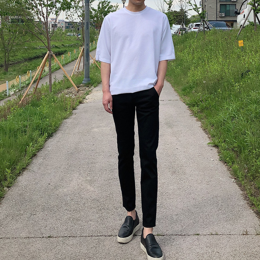 슬림핏 무지 9부 면바지(2color)