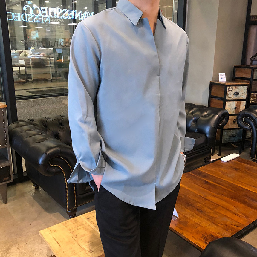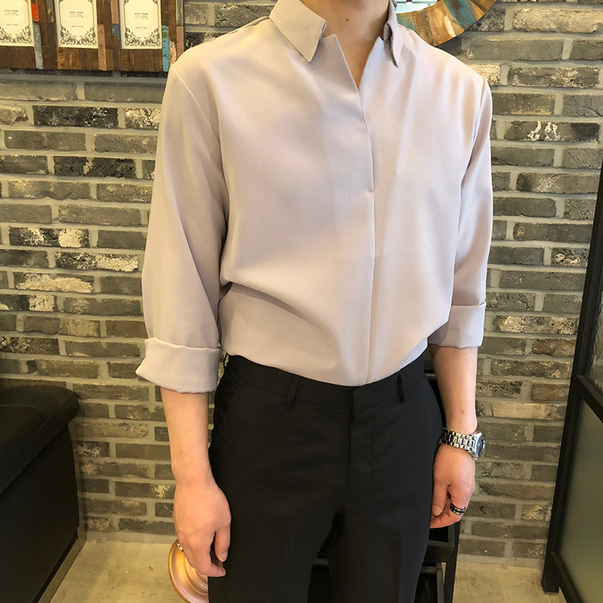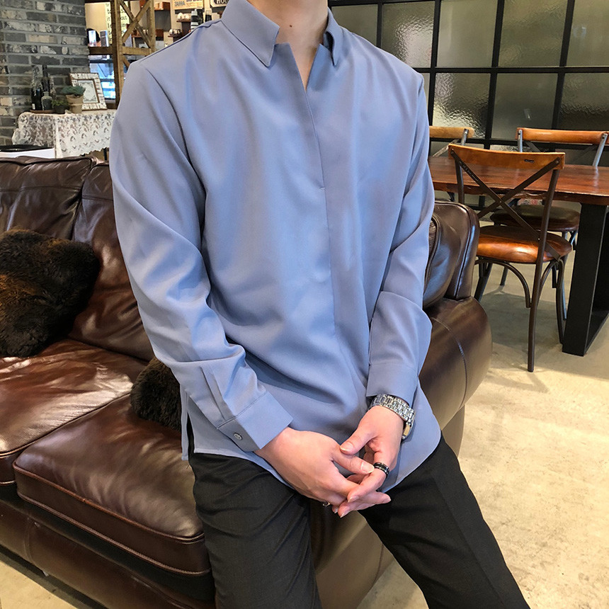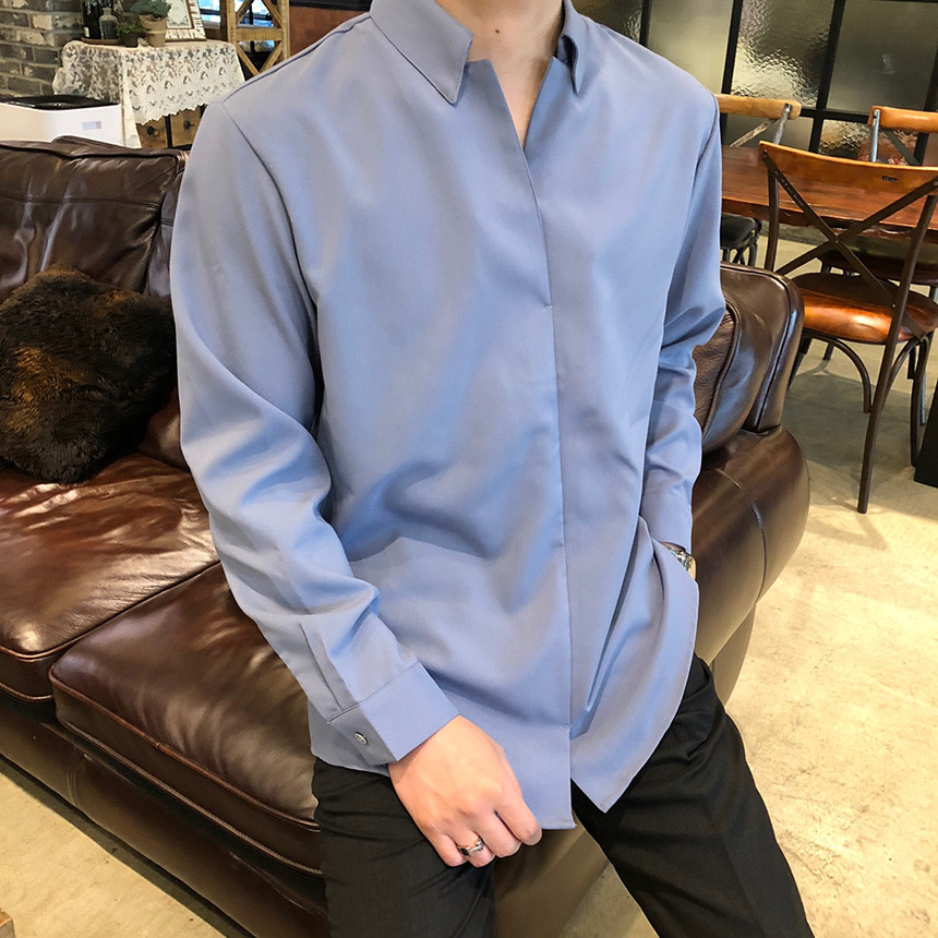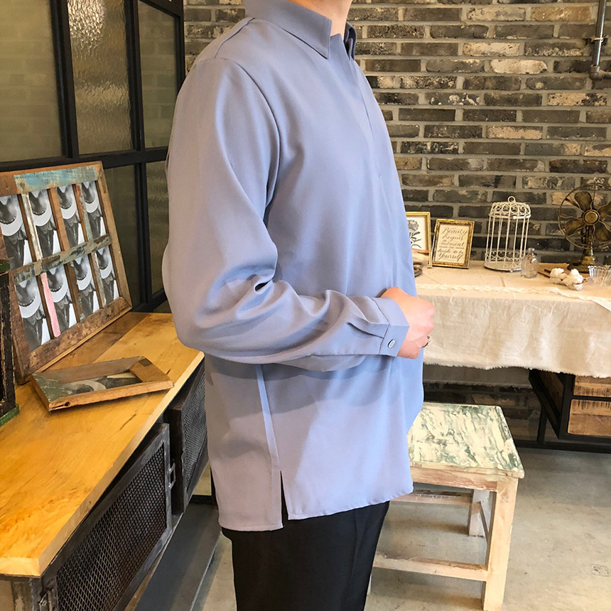 윗쪽부분에만 단추가 있는 셔츠 스타일로