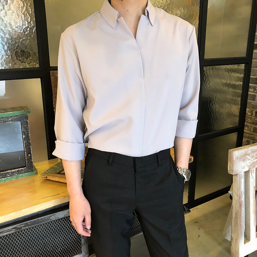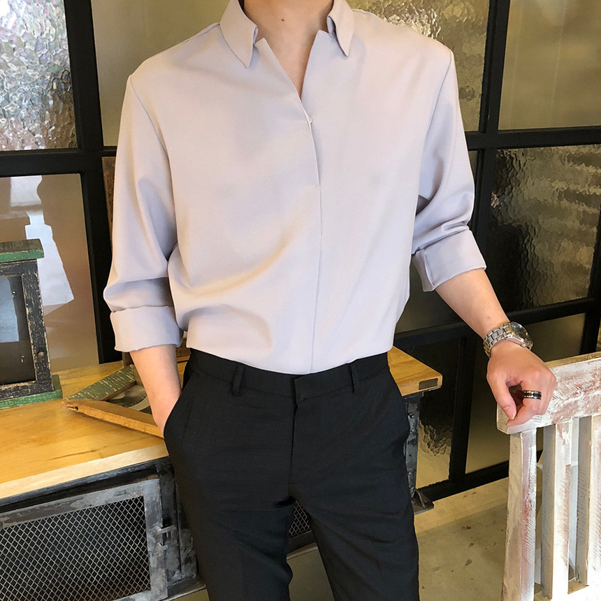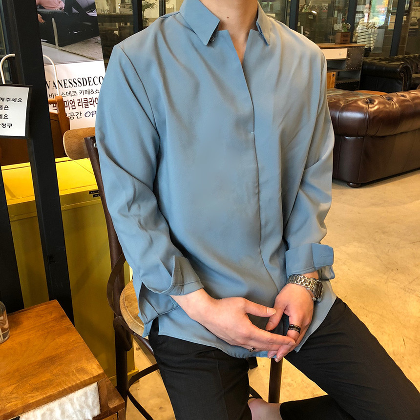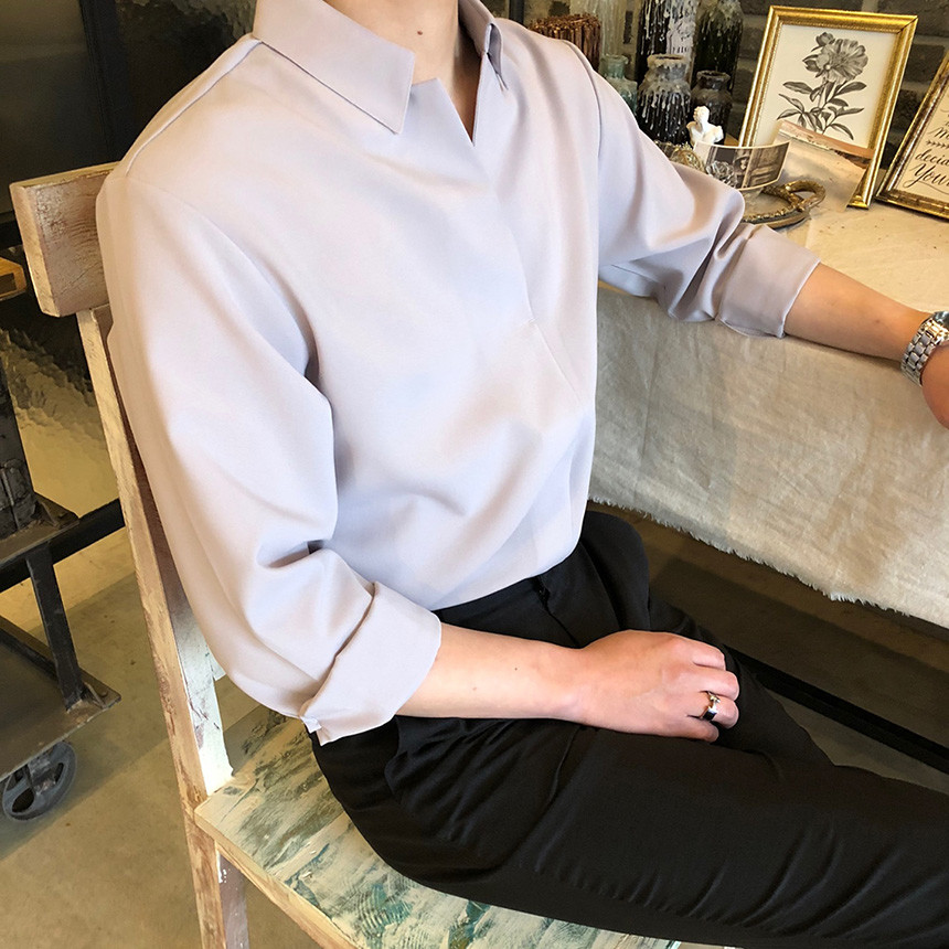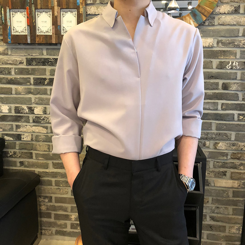 윗쪽부분에만 단추가 있는 셔츠 스타일로