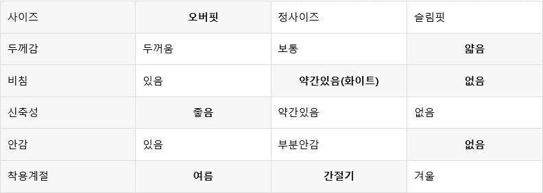 평소 입던 스타일과 달라 만족도가 낮을 수 있습니다