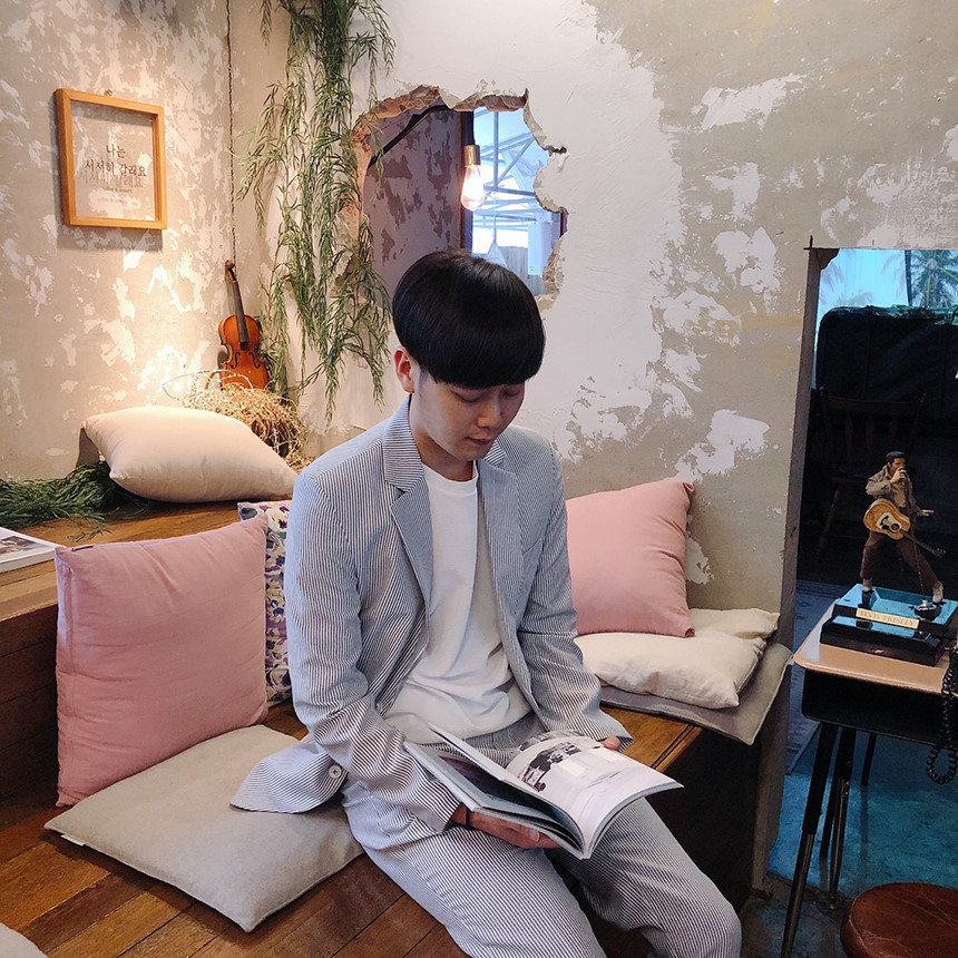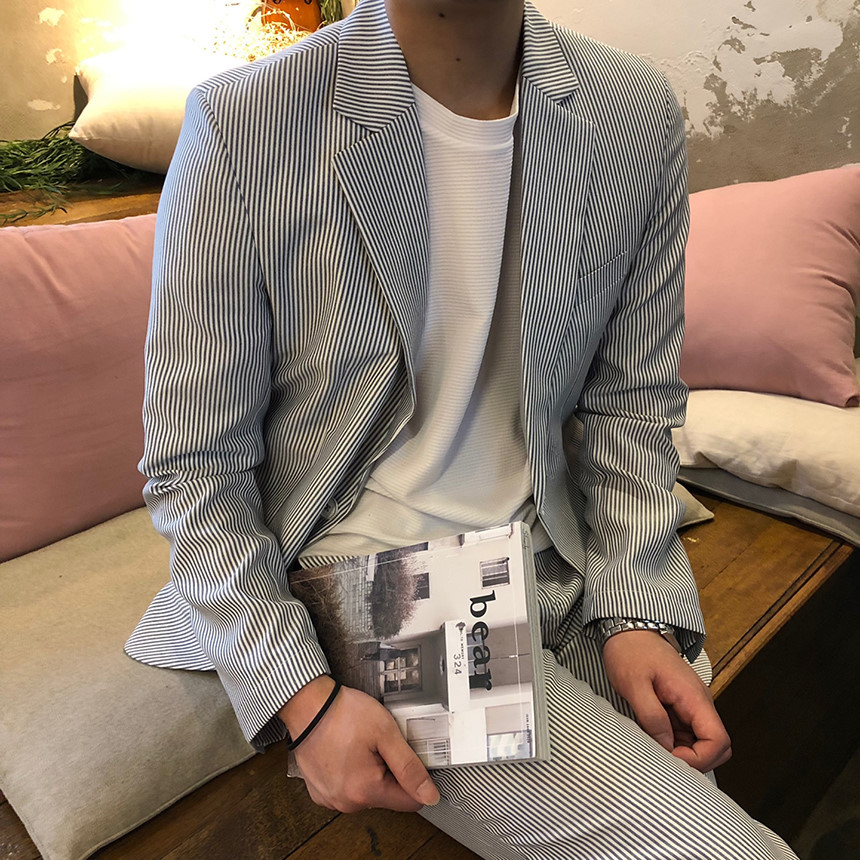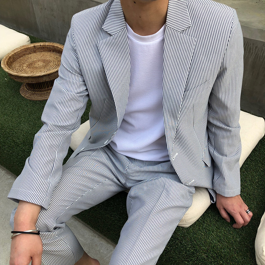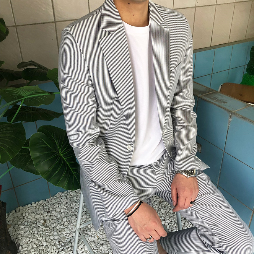 네이비 스트라이프 셋업