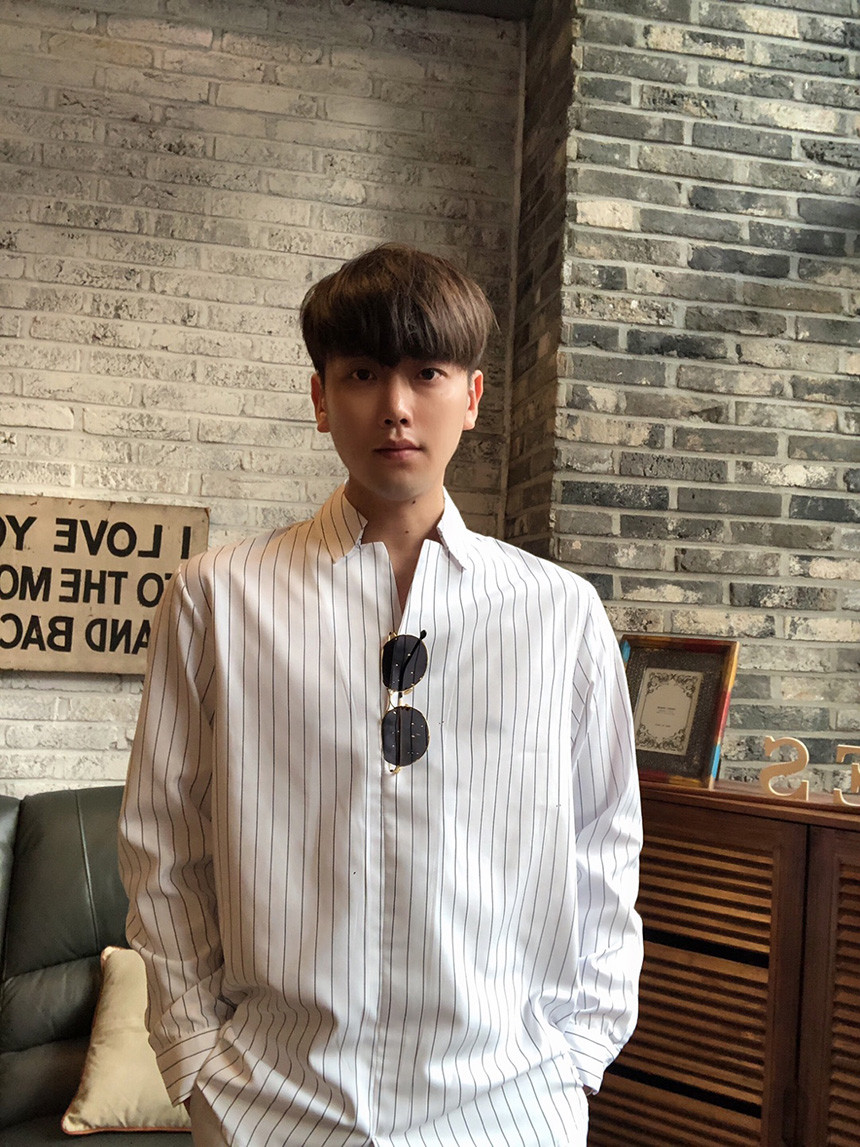 [S116] 스트라이프 스냅 튜닉 셔츠