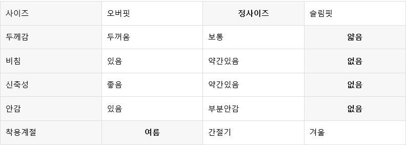 평소 입던 스타일과 달라 만족도가 낮을 수 있습니다
