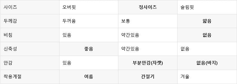 평소 입던 스타일과 달라 만족도가 낮을 수 있습니다