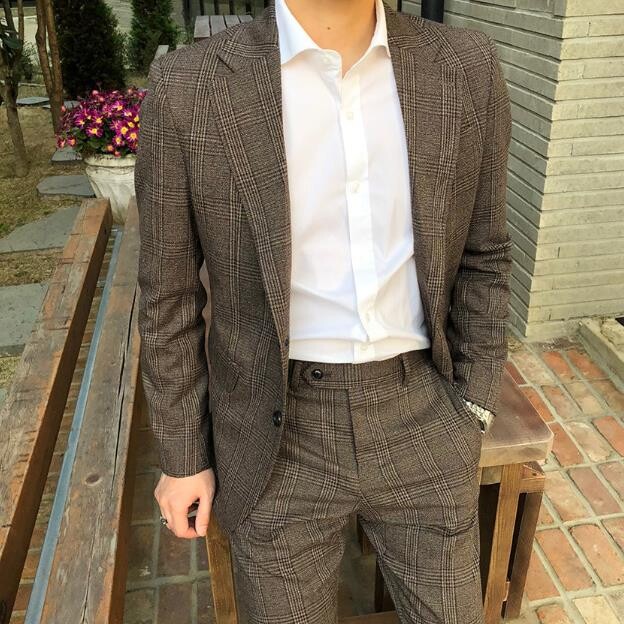 40번 (summer) 텐셀 브라운 체크 수트 세트 [BXAFLCM1834]