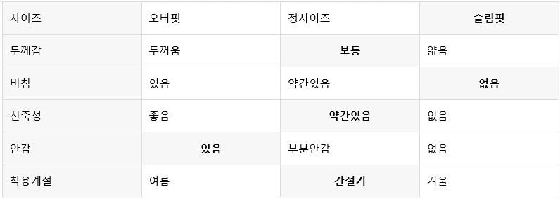 평소 입던 스타일과 달라 만족도가 낮을 수 있습니다