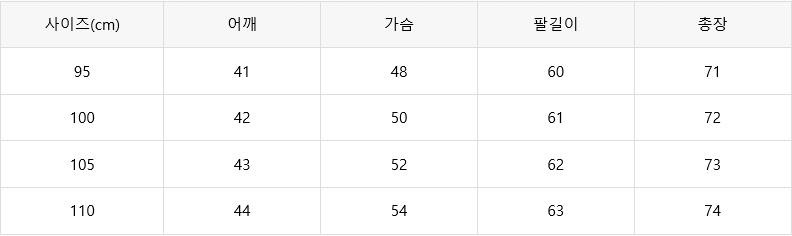 자켓사이즈 100 -> 실측사이즈 95-100