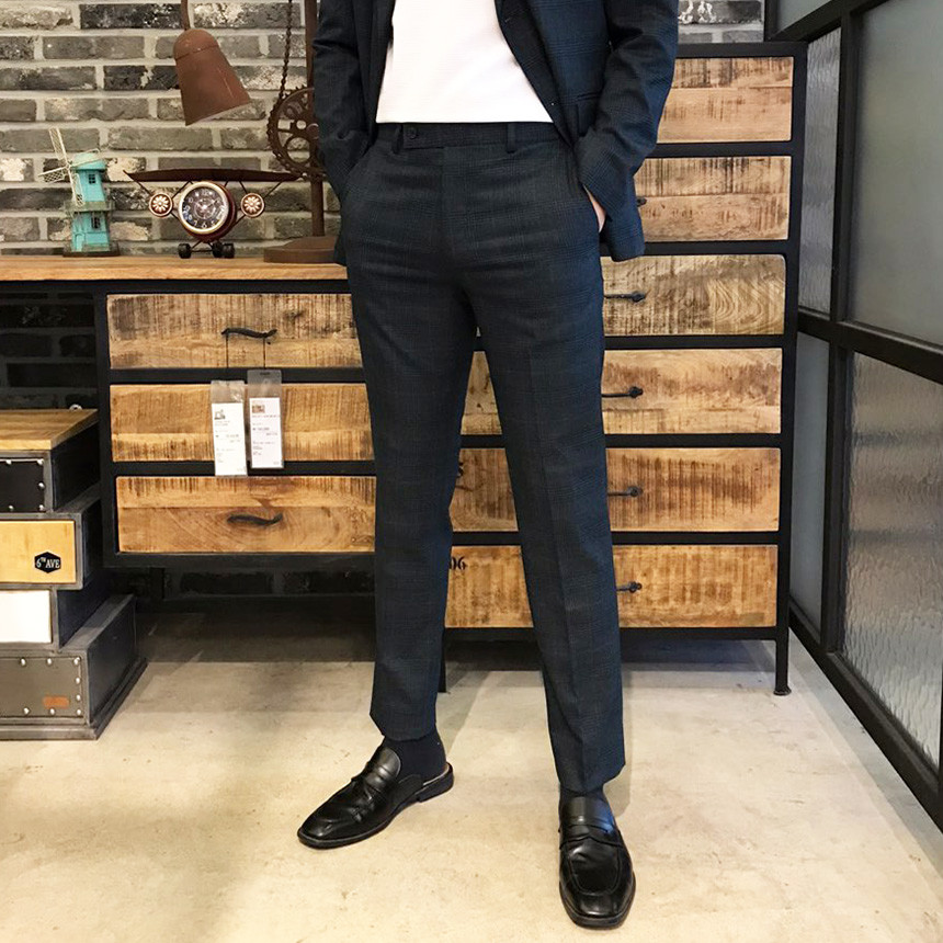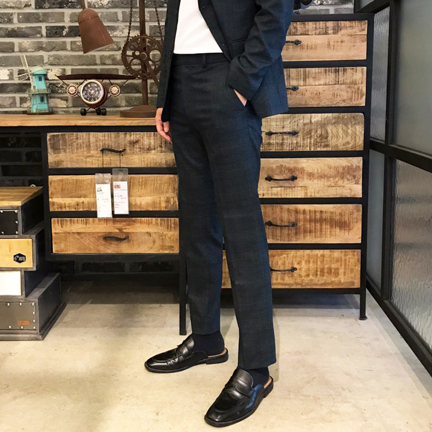 [BXAFLAF1274] 카키 블랙 체크 간절기 9부 슬랙스