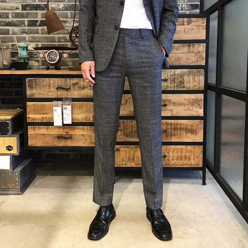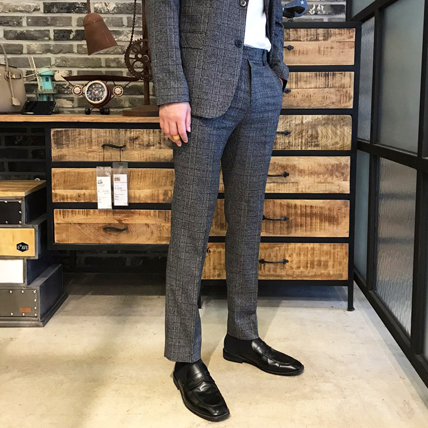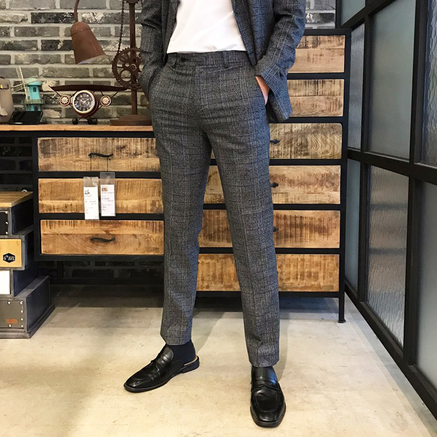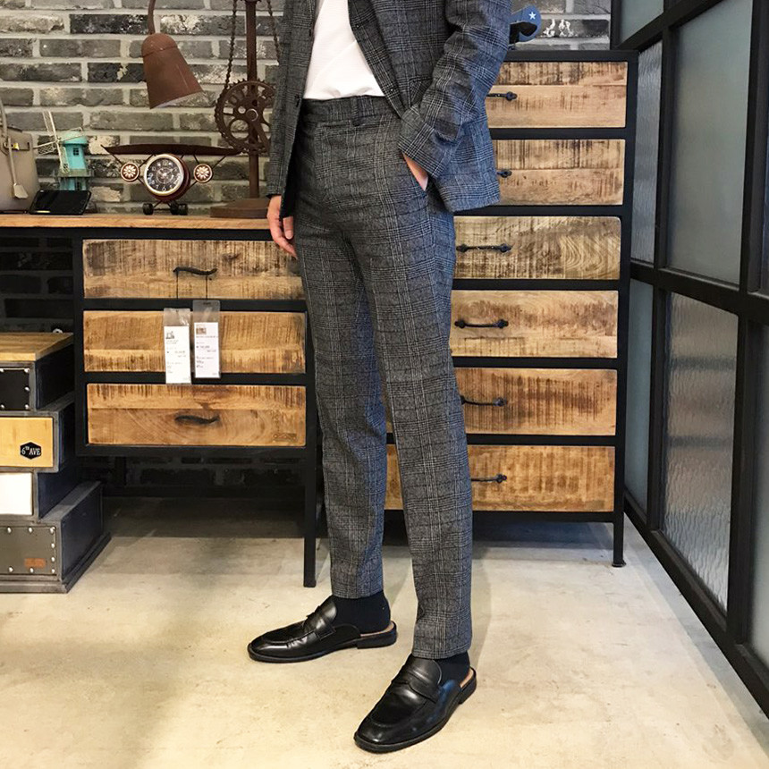 [BXAFLAF1276] 글렌 체크 블랙 간절기 9부 슬랙스
