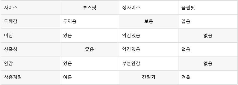 평소 입던 스타일과 달라 만족도가 낮을 수 있습니다